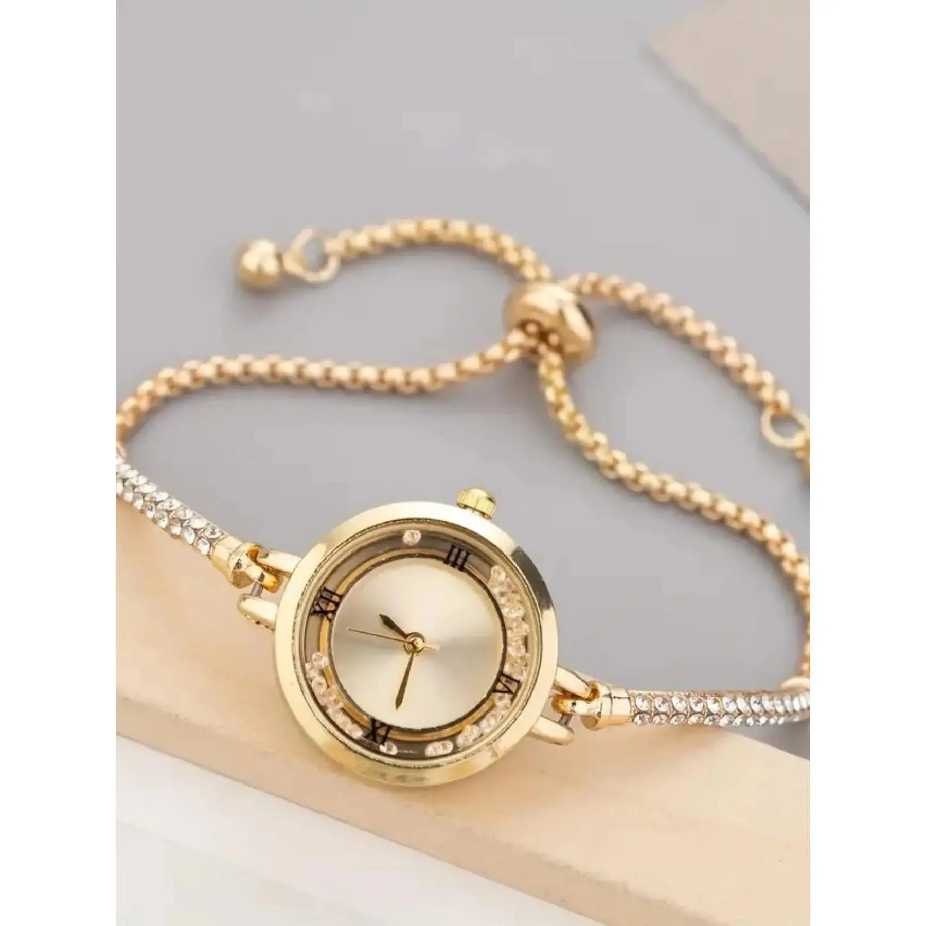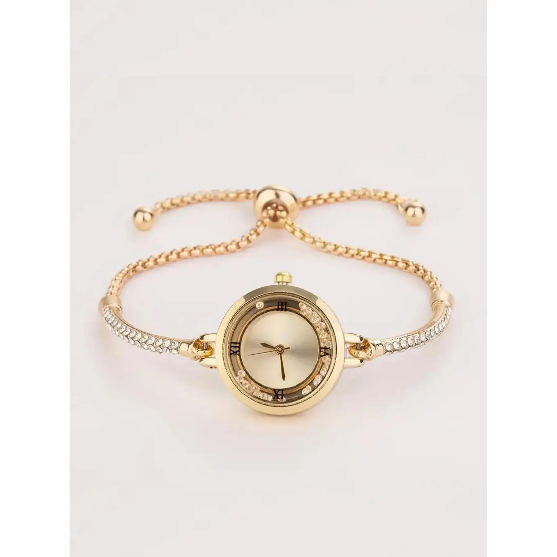 Women's Elegant Rhinestone Decorated Slide Adjustable Quartz Watch, Exquisite Trendy Wristwatch, Fashionable Watch for Women As Gift without Box