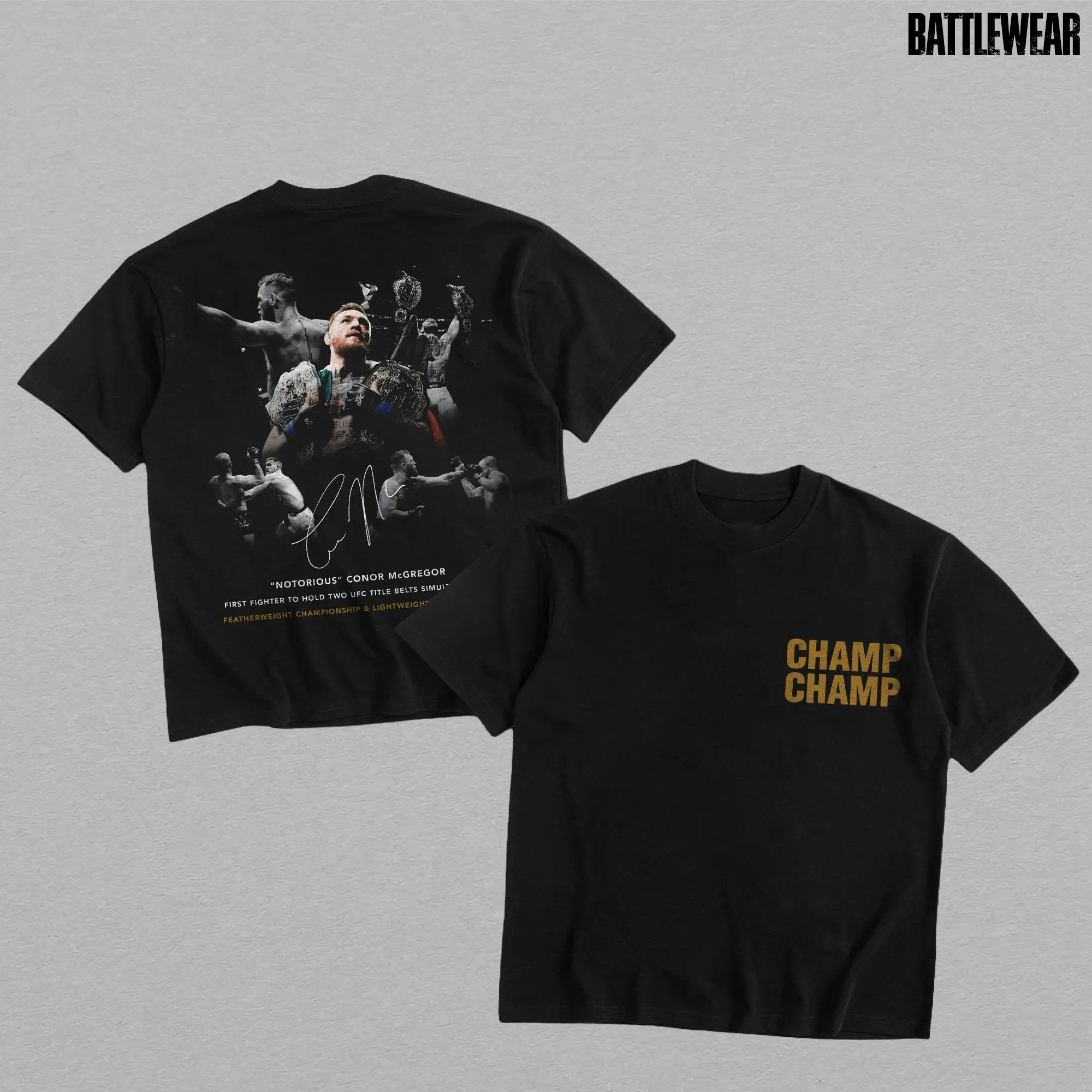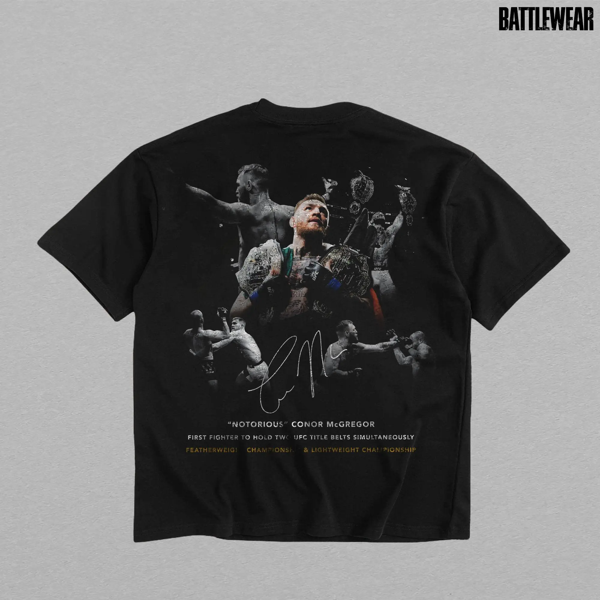Conor The Notorious McGregor Double Champion Signature Heavy Cotton T-shirt UFC Pound For Pound Shirt MMA Fan Apparel Pump Cover Direct-to-garment Printing Menswear Soft Casual Unisex Graphic Tee Vintage Streetwear