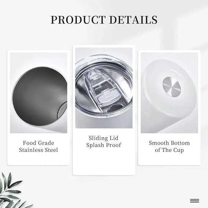 LARGE CAPACITY AND NON-SLIP RUBBER BOTTOM- wide mouth made for easy drinking and ice fit effortlessly inside. 20oz capacity holds great for ice coffee, juice, water, beer and more. The rubber bottom of the travel tumbler keeps it from sliding on slippery surfaces and reduces the noise. THILY travel mug is lightweight and compact to fit most car cup holders.