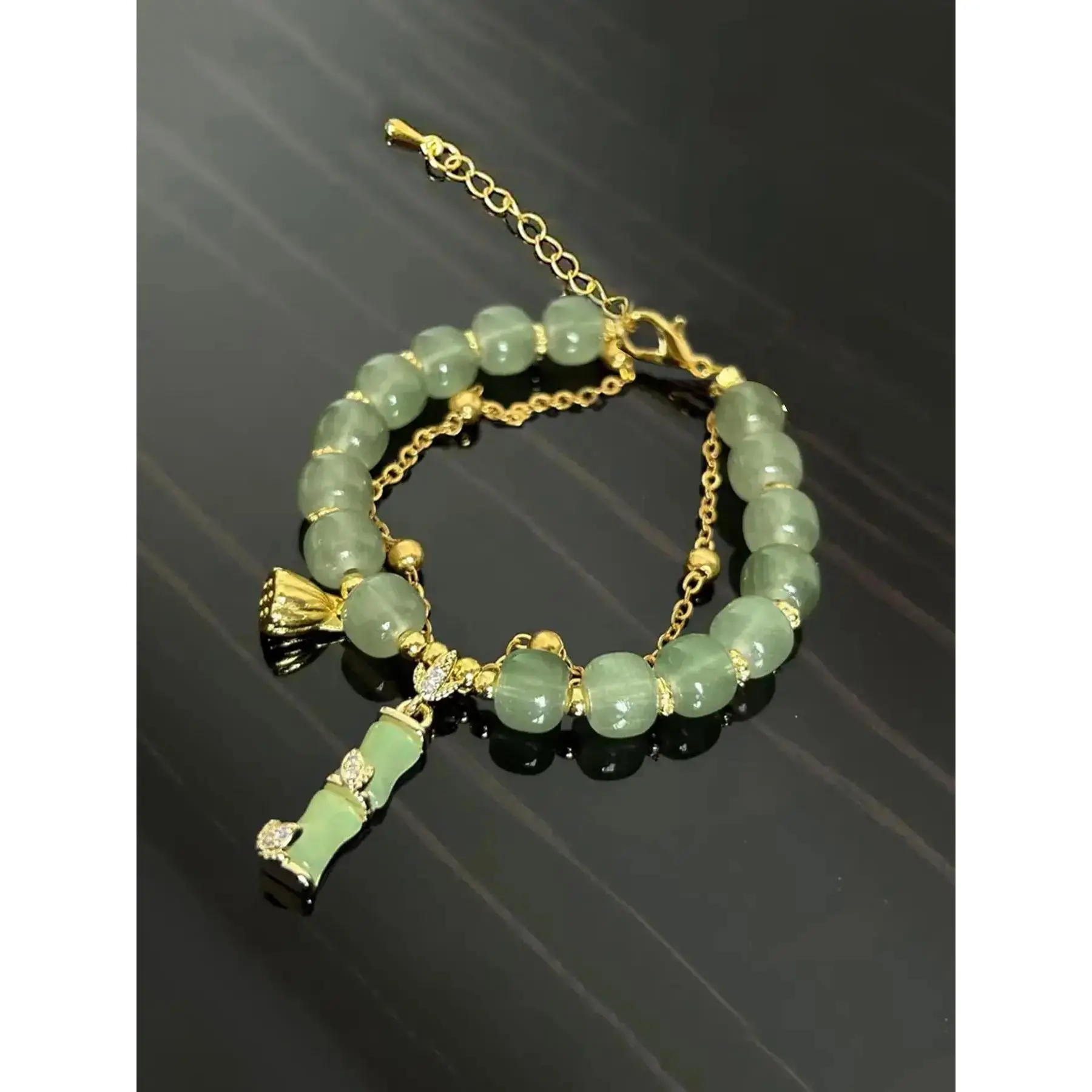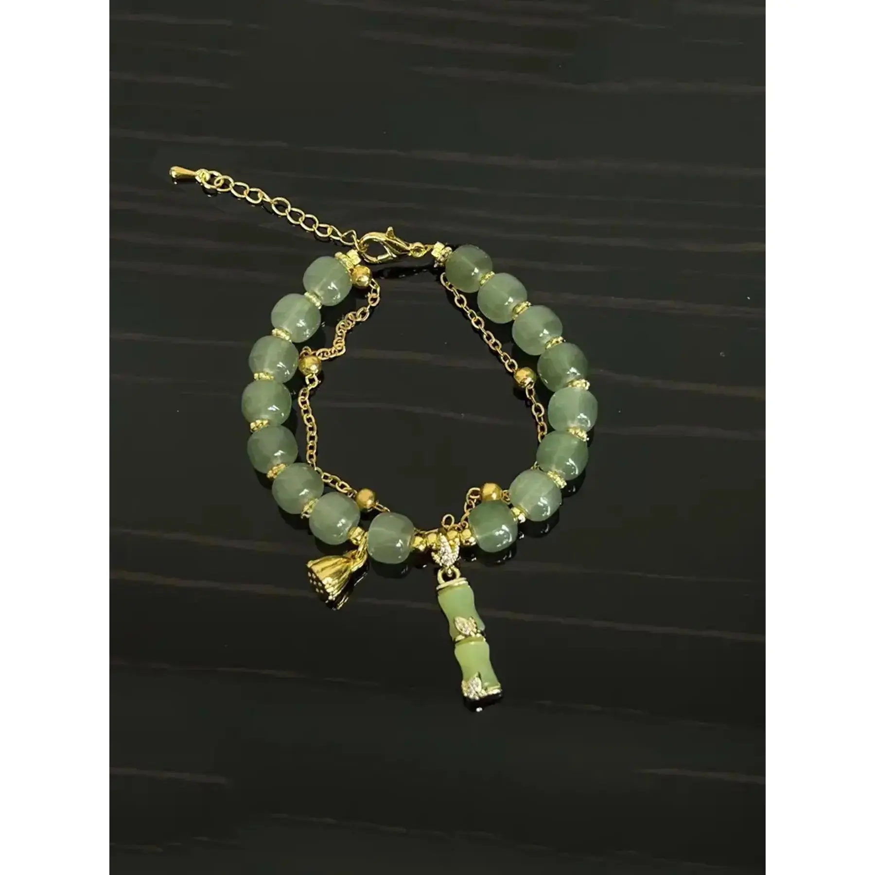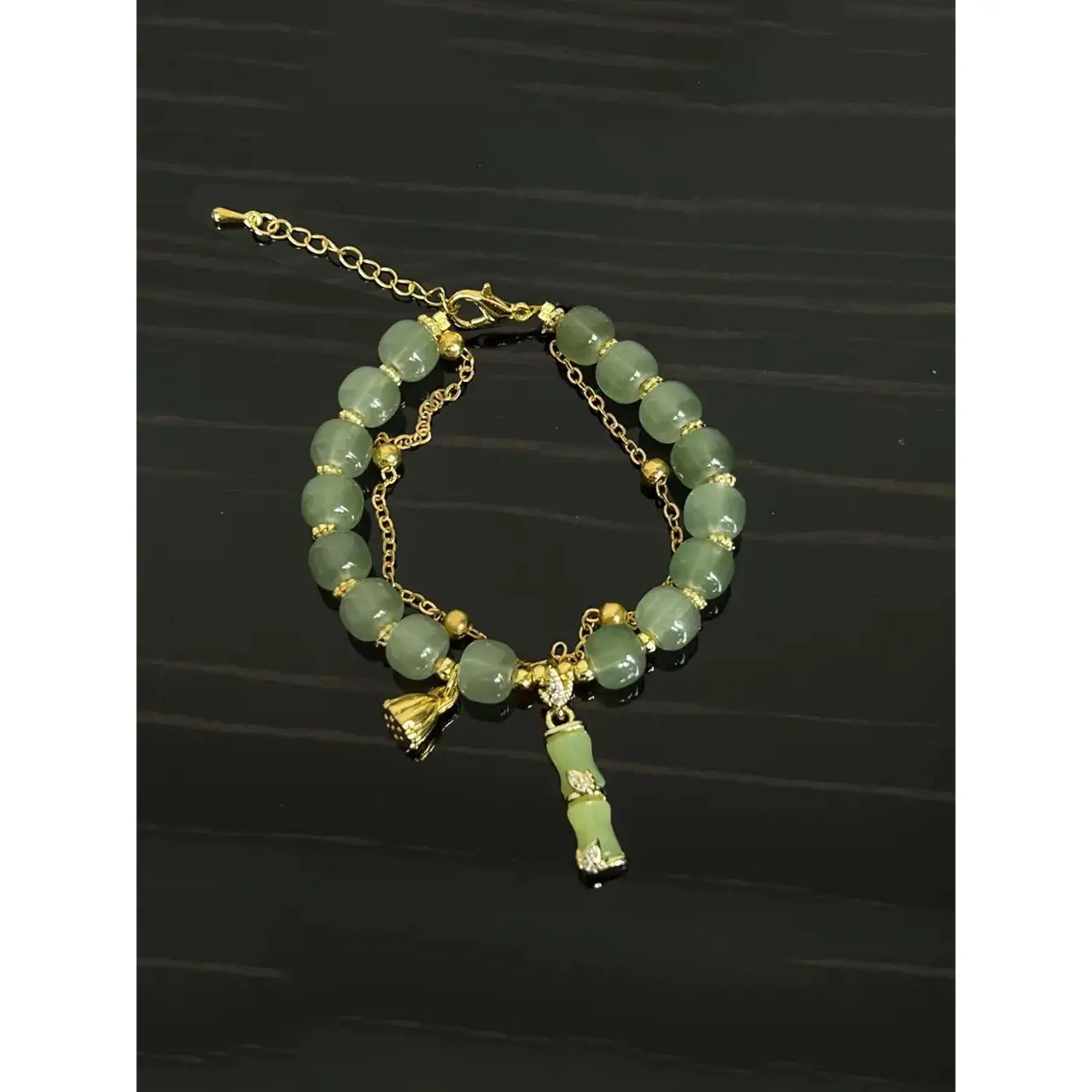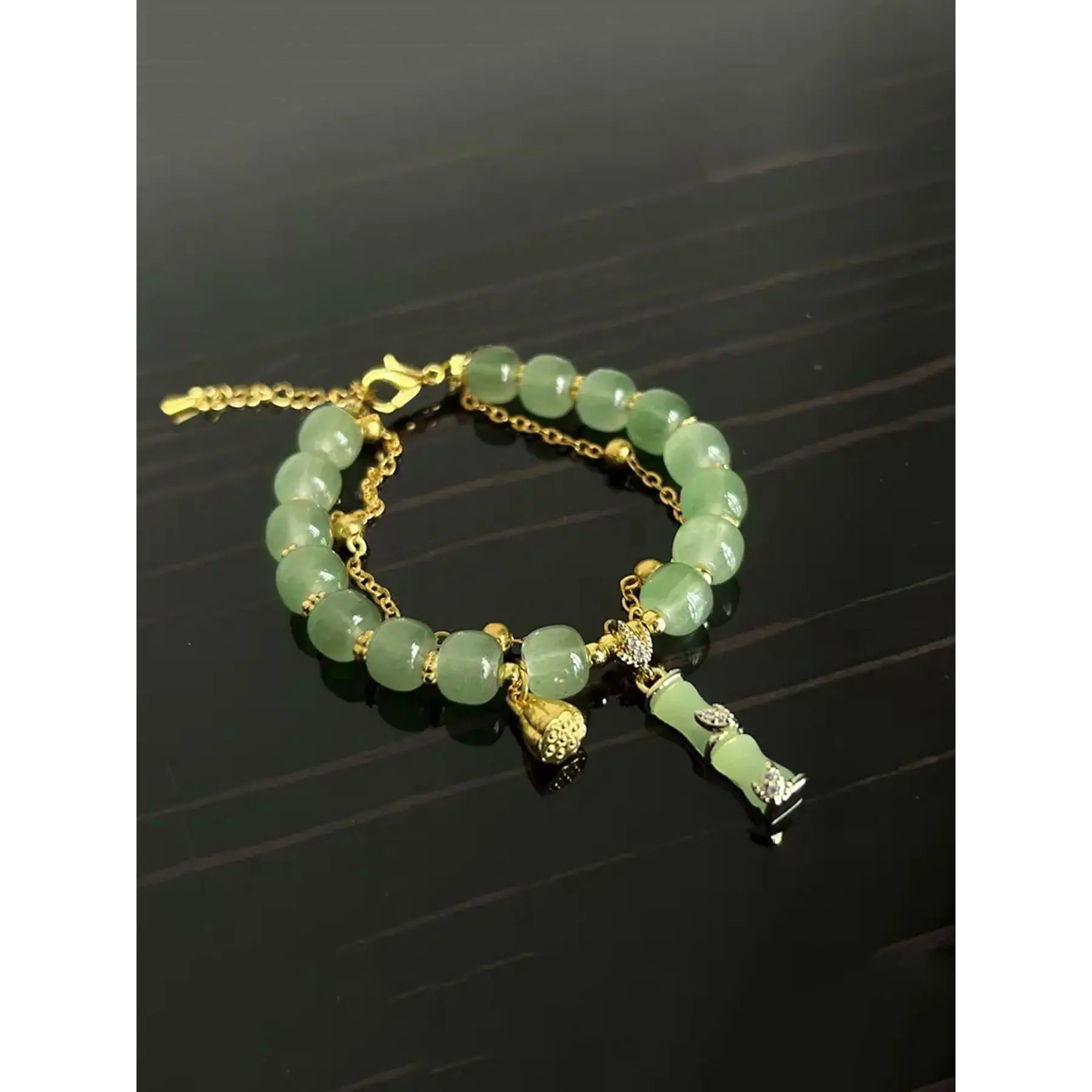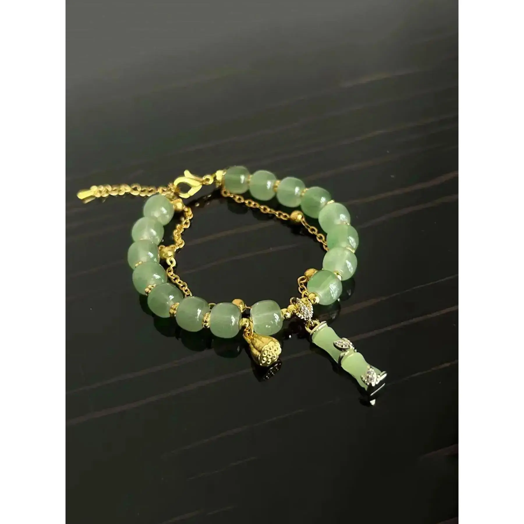 [Synthetic Glass Beads]: Crafted with synthetic glass, this bracelet showcases a luminous quality that enhances the bamboo joint and lotus designs for a distinctive look.