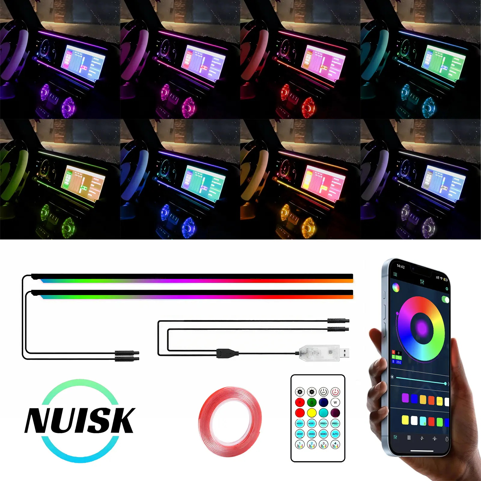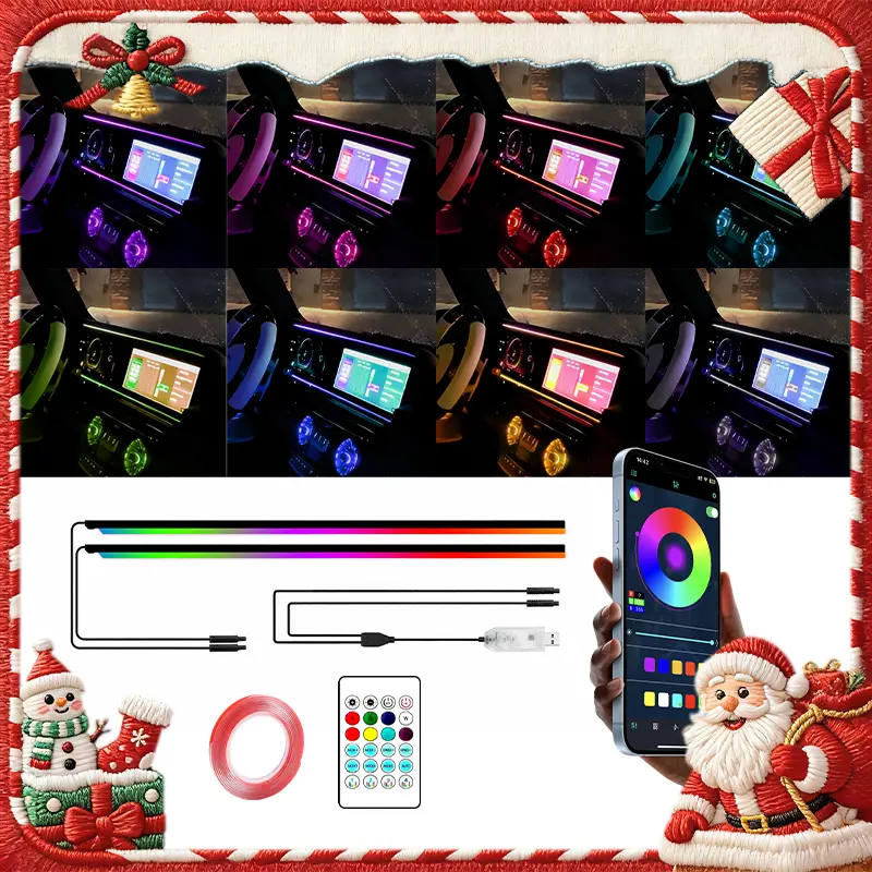 Upgrade your car interior with this hidden acrylic LED ambient light strip. Features 256 vibrant RGB colors, dynamic flowing lighting effects, and a slim invisible design that blends seamlessly into your dashboard and door panels. Easy to install, no damage to your car, and multiple lighting modes to match your mood. Create a stylish, personalized atmosphere for driving, night rides, and video shooting.