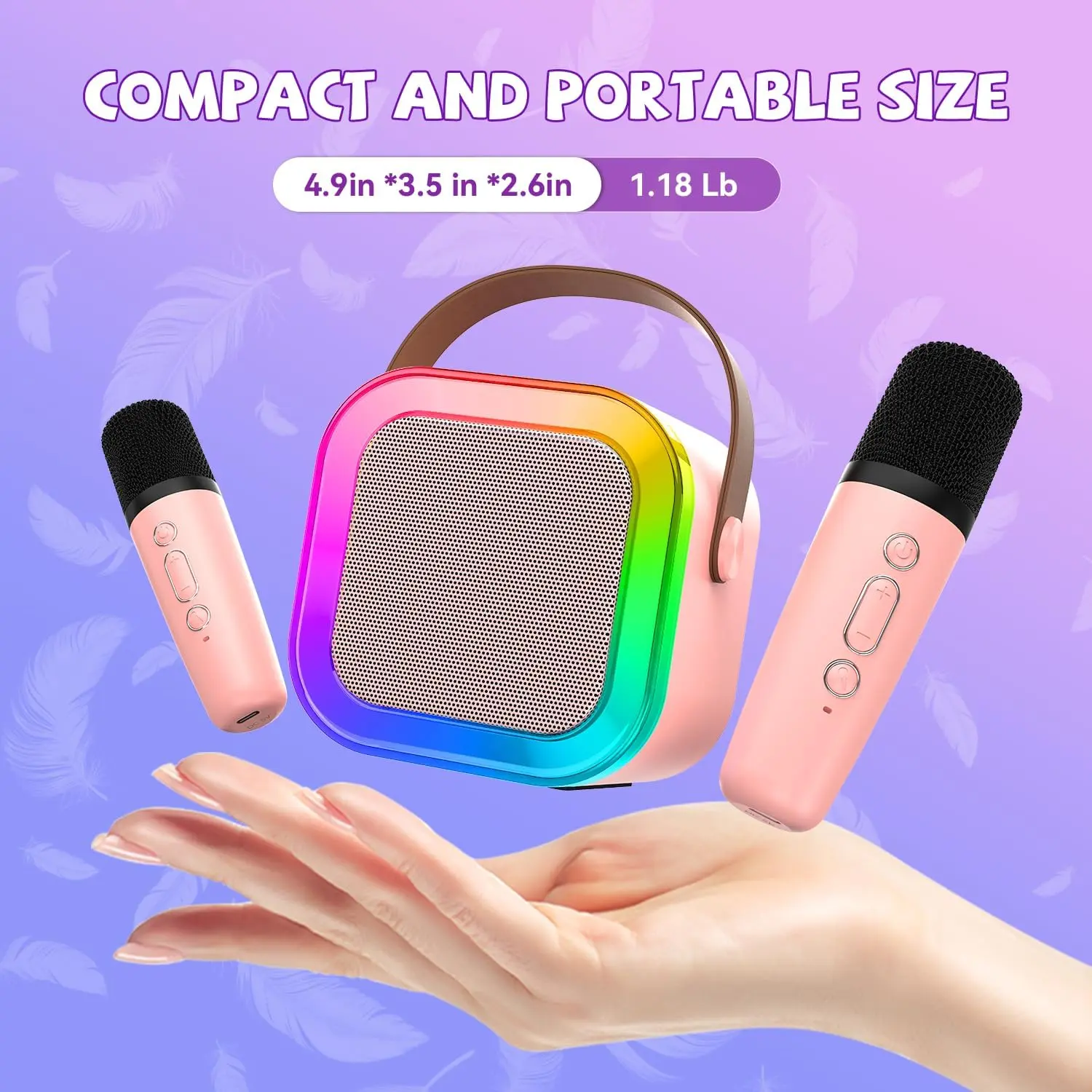 ·More Fun, Less Fights with Dual Mics: Say goodbye to sibling squabbles! Our mini karaoke machine for kids comes with two wireless microphones so children can sing duets and share the stage. This kids karaoke machine encourages teamwork, creativity, and fun memories for girls and boys aged 3–12.