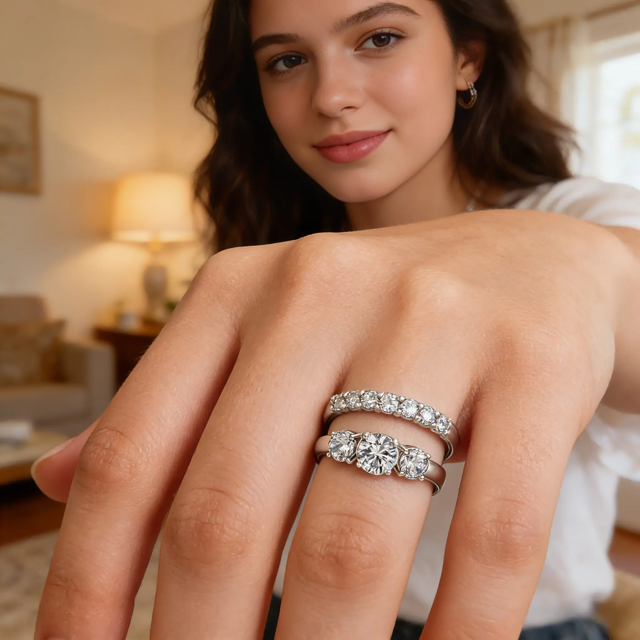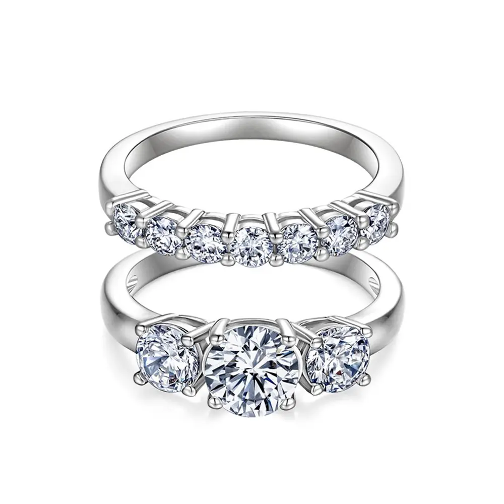 Can't take your eyes off it? Neither can anyone else! Our Stackable Two-Ring Moissanite Trio Set ensures you remain the absolute center of attention. Featuring VVS1 clarity Moissanite—stones that sparkle even more brilliantly than diamonds, yet come at a mere fraction of the cost!