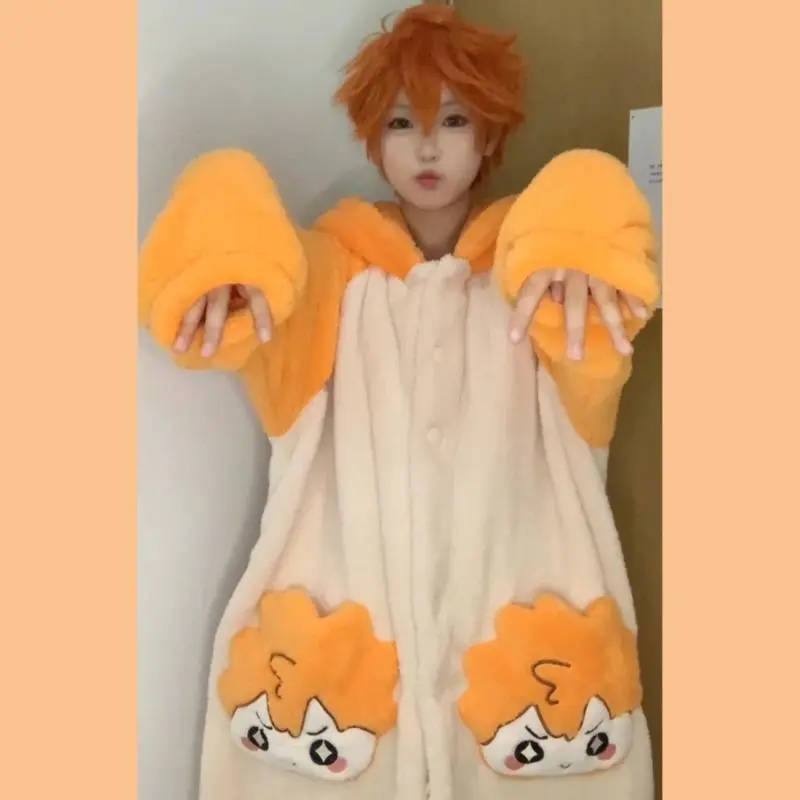 Haikyuu!! Pajamas Kageyama Tobio Hinata Shouyou Cosplay Robe And Pants Soft Cute Thickened Coral Velvet Warm Couple Homewear