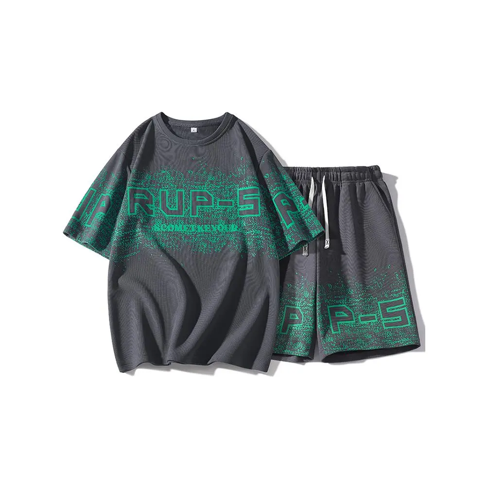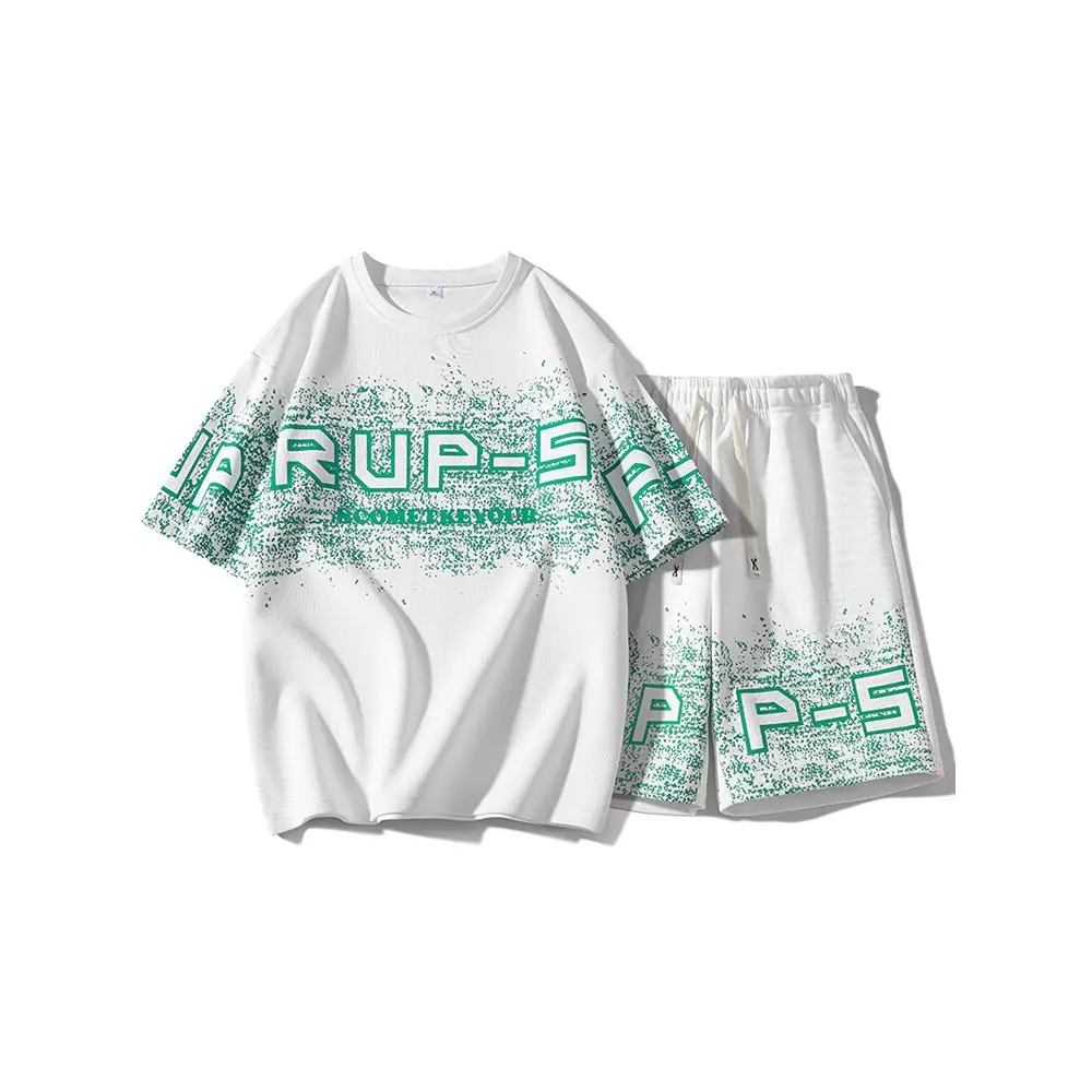Urban Code Vibe Mens Digital Print Sweat Suit Set Oversized Fit T-Shirt with Modern Graphic and Coordinating Shorts for City Streetwear and Night outs