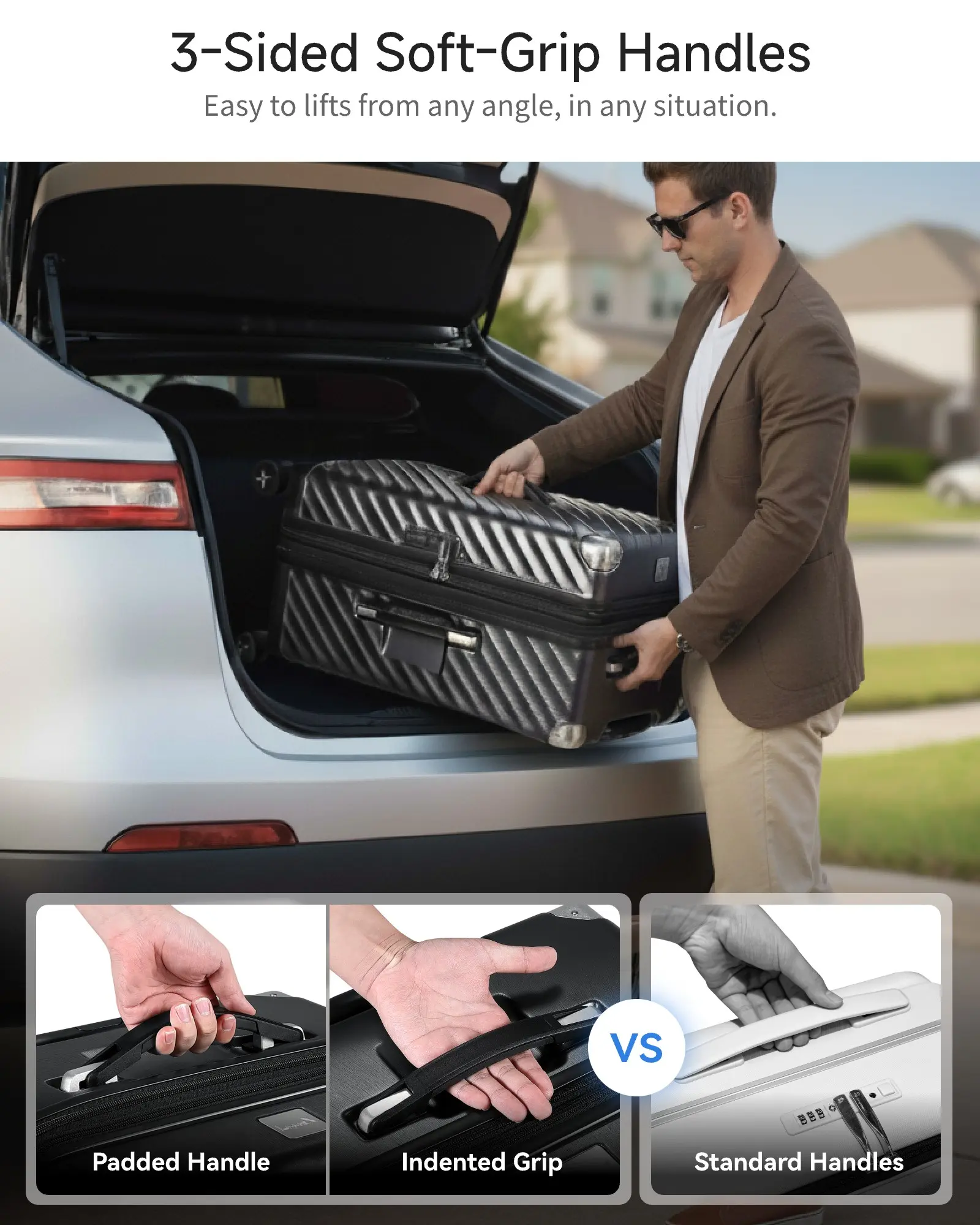 • Spring-Loaded Wheels for Smooth Travel: Built-in spring system absorbs shocks, reducing bumps and noise while gliding smoothly across various surfaces. Durable, silent, and easy to maneuver, this is a 24 inch luggage with spinner wheels that works well through airports, streets, or uneven terrain.