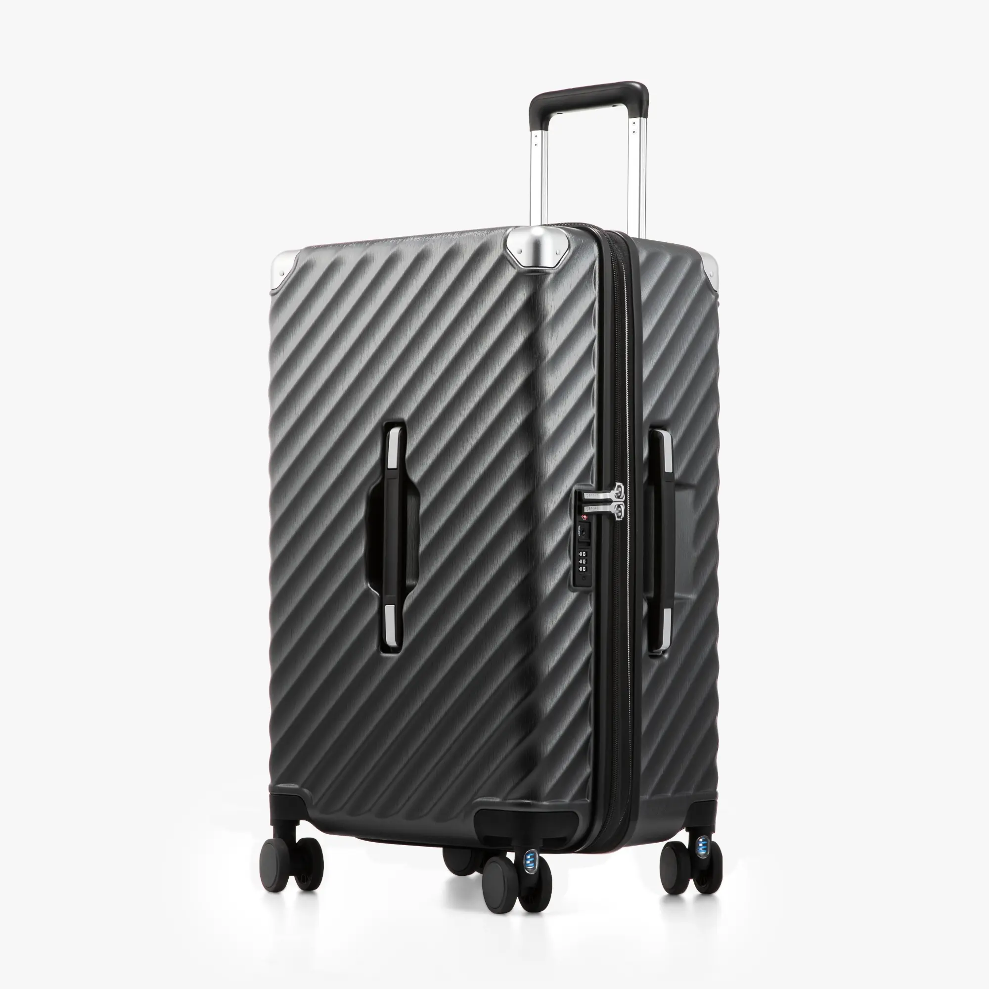 • Durable 100% Polycarbonate with Reinforced Corners: Crafted from 100% polycarbonate, this polycarbonate luggage, using a material stronger and more impact-resistant than ABS, protects your luggage from compression and drops. Four aluminum alloy corner guards shield vulnerable edges, extending suitcase life.