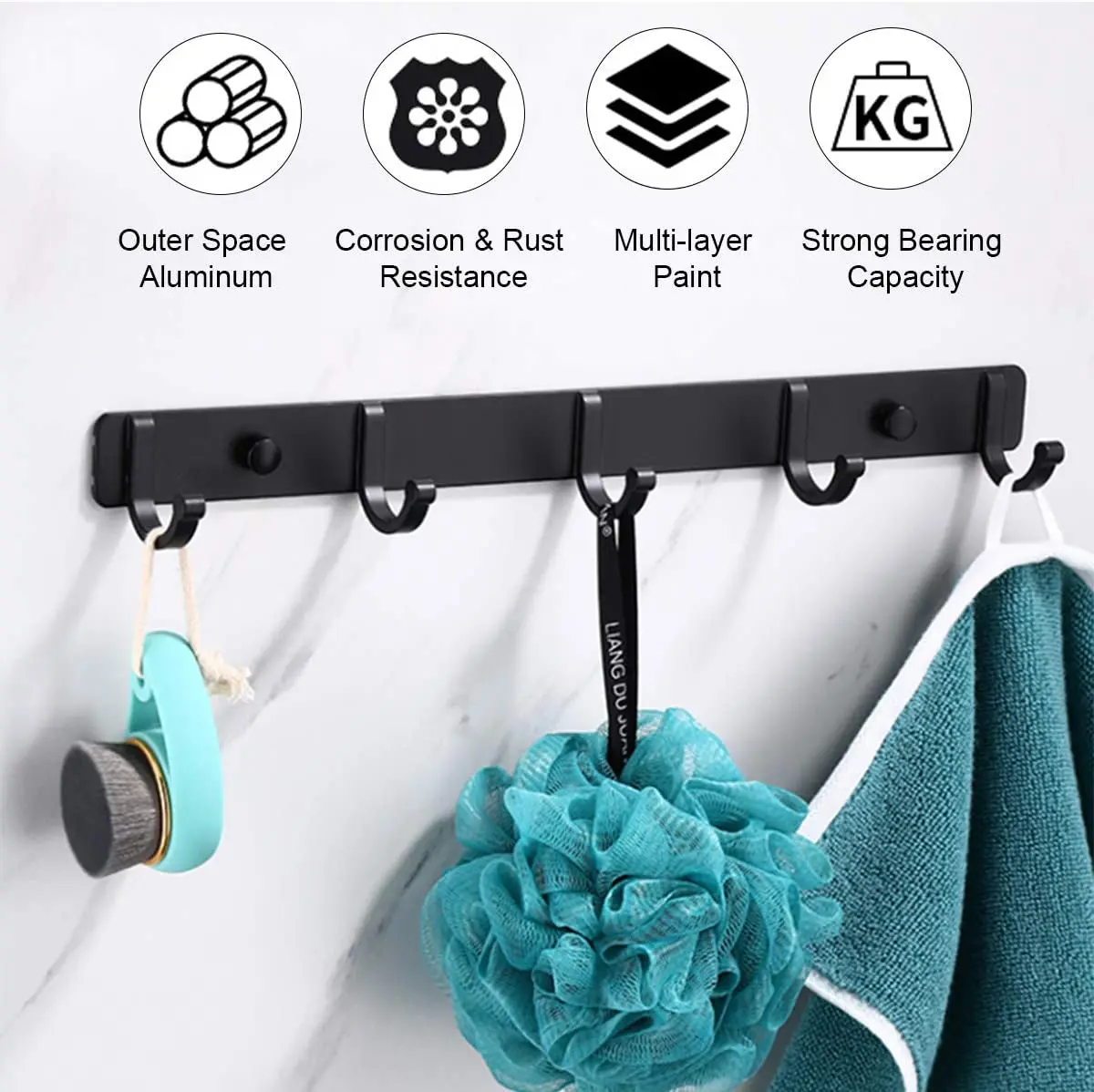 【Metal backplate】:These heavy duty wall mounted hooks rack are made of high quality aluminum alloy material, very sturdy and strong,not easy to bend.Black lacquered finish,rustproof,well-constructed for longer daily use.