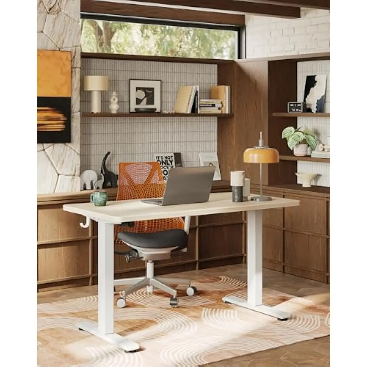 Ergonomic Home Office Desk - The adjustable standing desk allows you to switch between sitting and standing while working, promoting healthier posture and more productive work habits, reducing strain on the body.