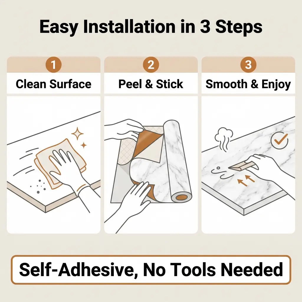This contact paper is versatile, suitable for various surfaces. It's perfect for cabinets, furniture, and doors. Transform your space with this easy-to-use, durable wallpaper. No more complicated installations. Just peel and stick for a professional look.