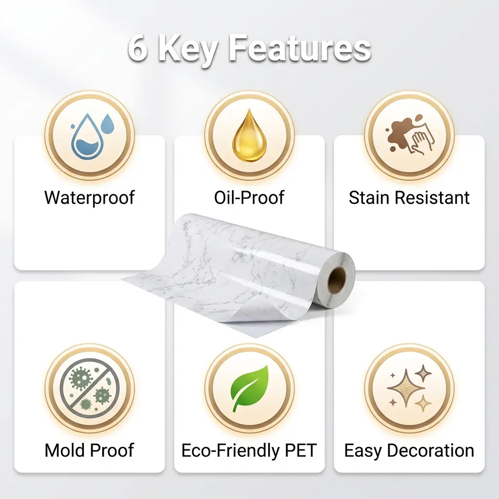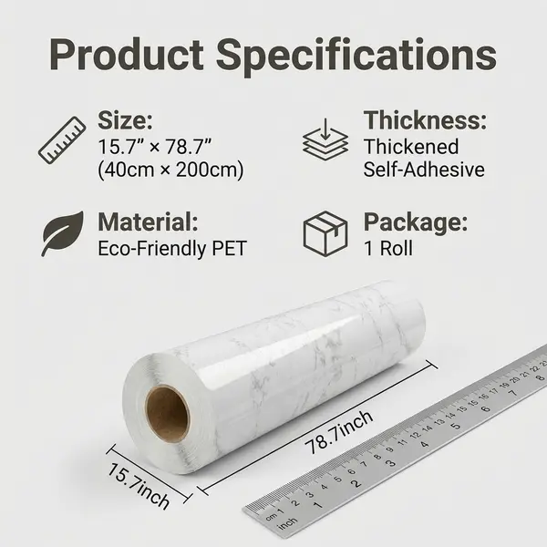 This self-adhesive wallpaper is perfect for kitchen cabinets, furniture, and doors. It's waterproof, oil-proof, and heat-resistant, making it ideal for renovations. The thickened PET material ensures durability and a sleek finish. No need for messy installations; simply peel and stick.