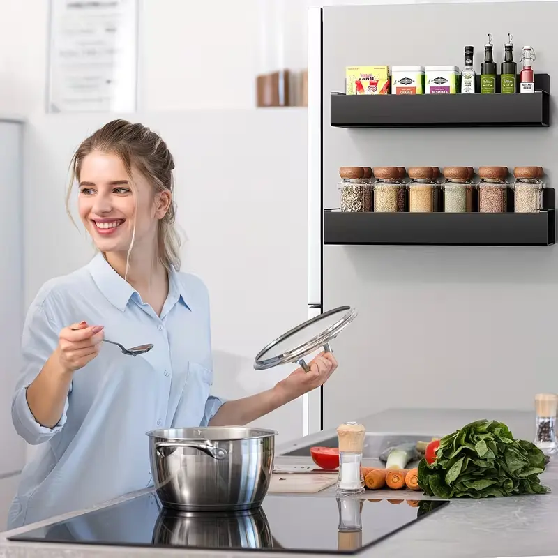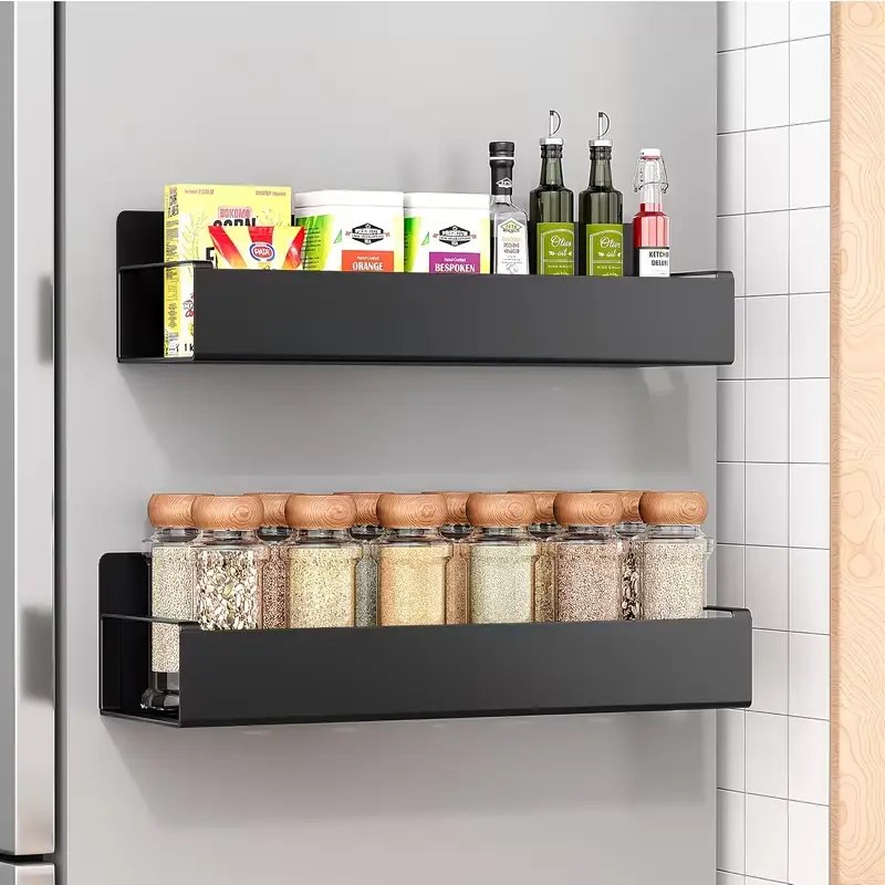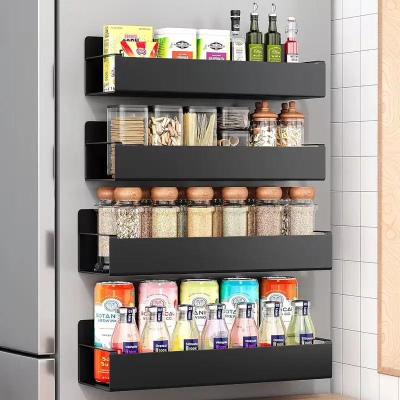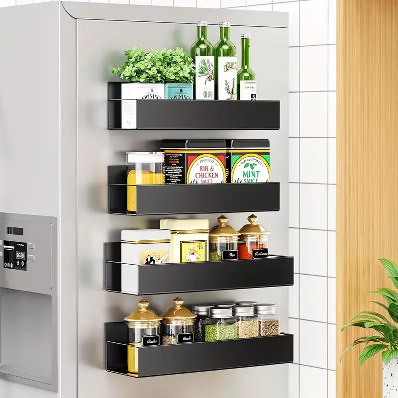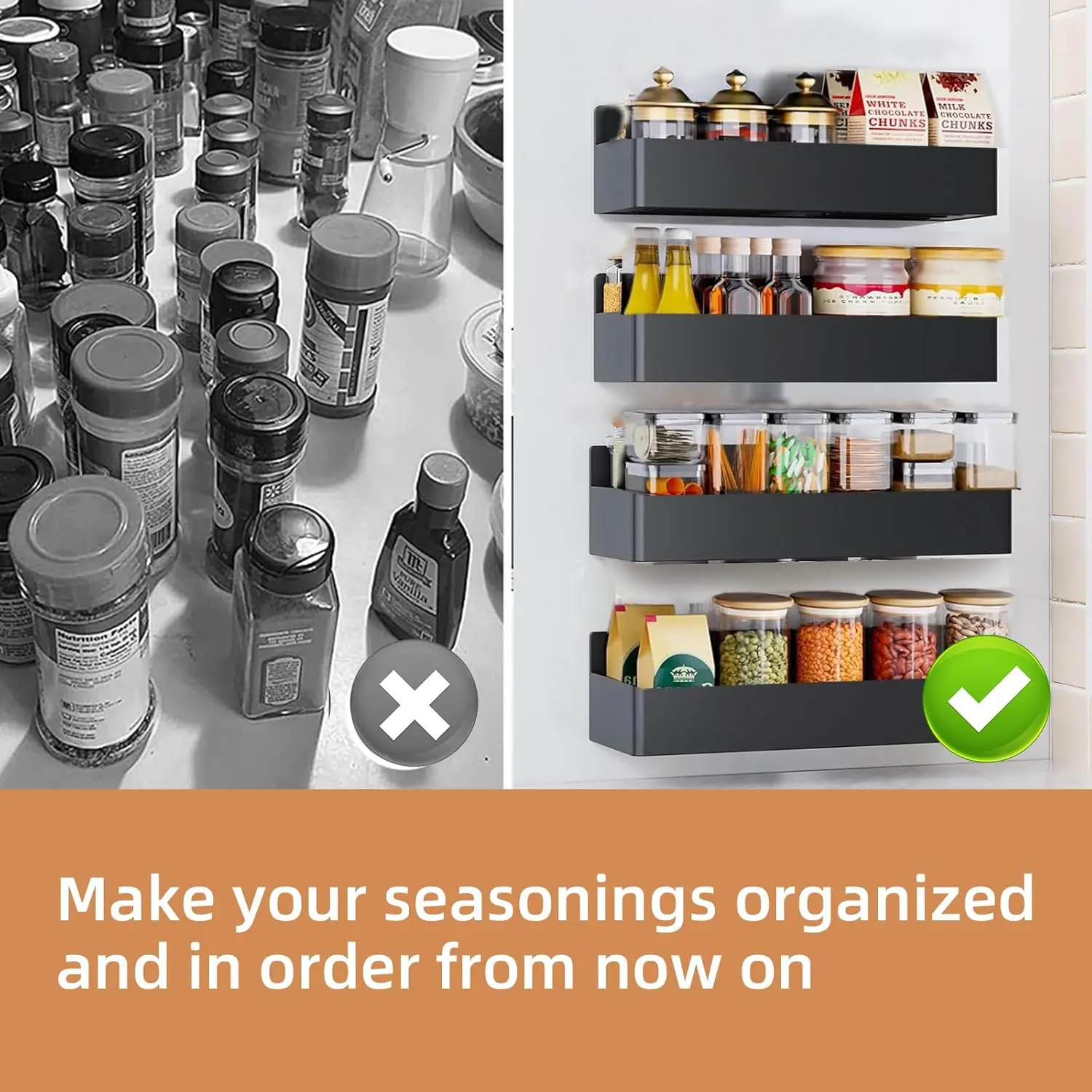4 Pack Magnetic Spice Rack for Refrigerator, Rustproof Metal Spice Storage Organizer with Hooks, No Drill Magnetic Shelf for Kitchen Fridge, Space Saving Kitchen Organization4 Pack Magnetic Spice Rack for Refrigerator, Rustproof Metal Spice Storage Organizer with Hooks, No Drill Magnetic Shelf for Kitchen Fridge, Space Saving Kitchen Organization