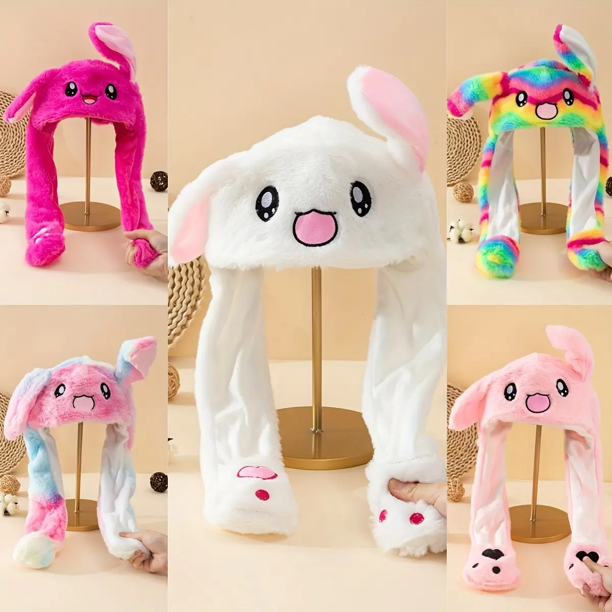 Women's Plush Rabbit Costume Hat - Multi-Color Faux Fur with Bunny Face, Lightweight Non-Elastic for Cosplay, Animal Parties & Christmas, Hand Washable, Bunny Hat, Festive Headwear, Whimsical Headgear, Soft Texture Headwear