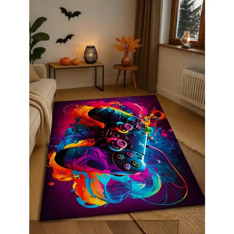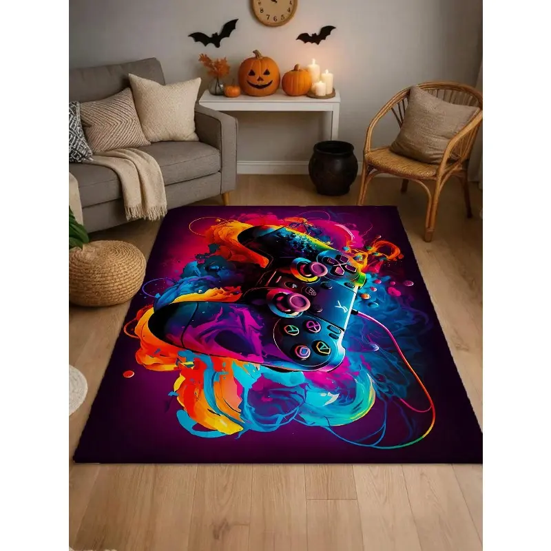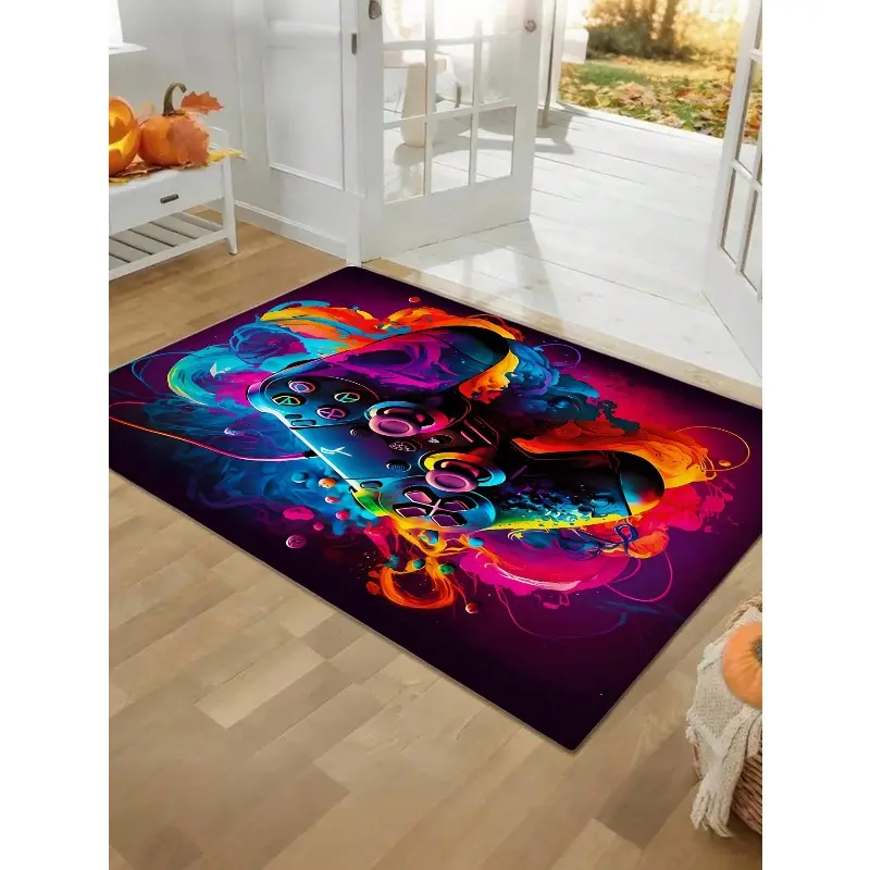 Neon Graffiti Game Controller Flannel Area Rug - Colorful Gaming Print Soft Mat for Living Room, Non-Slip Gamer Home Decor#GameControllerRug #GamingMat #GamerRoomDecor #NeonGraffitiCarpet #NonSlipFlannelRug