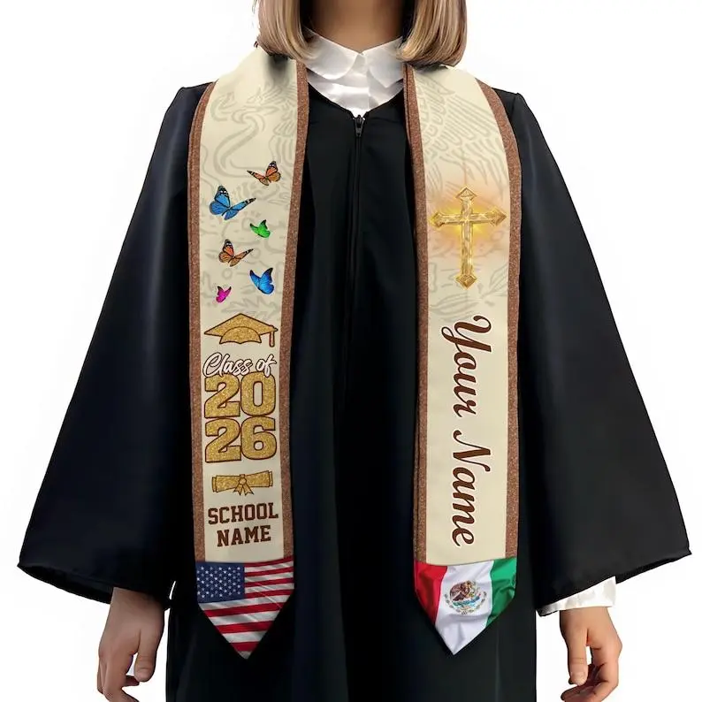 Custom Mexican American Graduation Stole 2026, Mexico Heritage Graduation Sash, Gift for Daughter Son