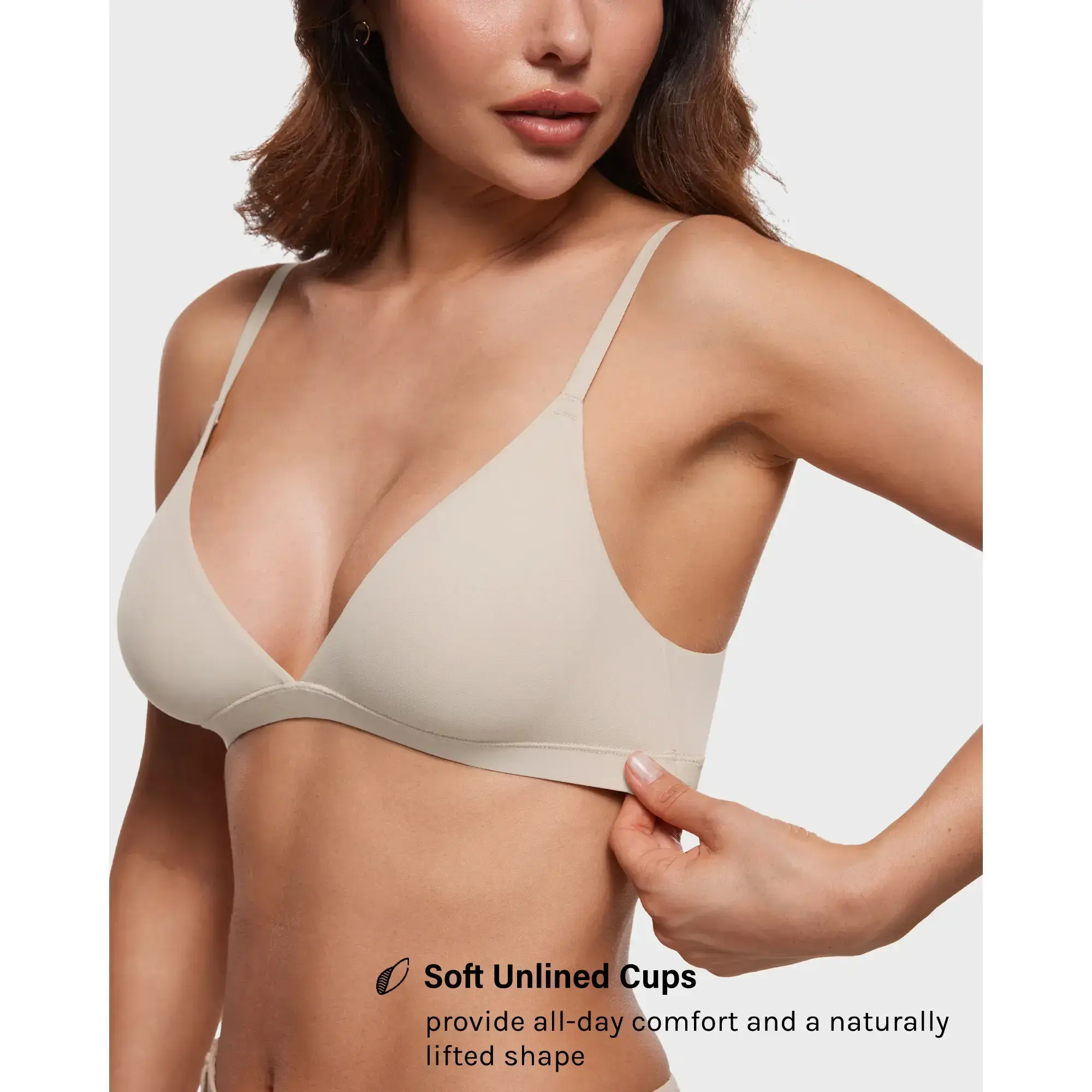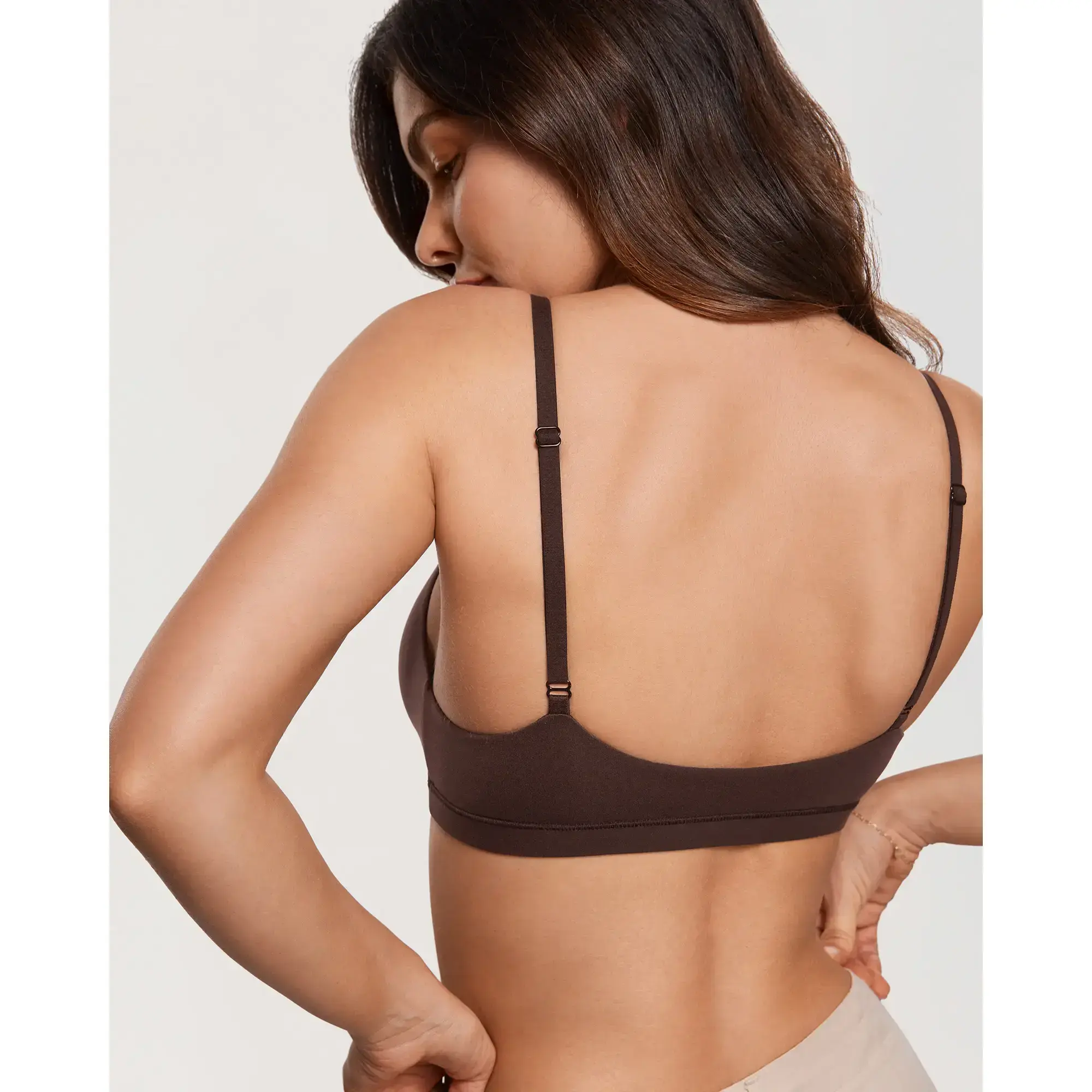 [Upgraded with ultra-soft and stretchy fabric, more comfortable, Non-padded, non-wired design for a natural shape, Dual-layer stretch fabric for added support, Fully adjustable straps and pull-on design for an effortlessly style, Deep plunge neckline, perfect for pairing with low-cut clothing]