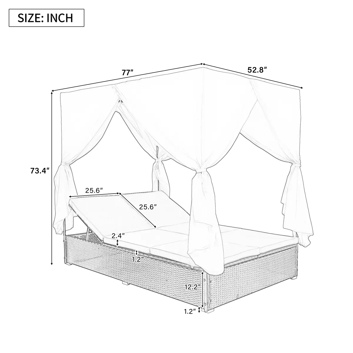 The integrated curtains provide gentle sun shading to help reduce harsh glare, creating a more pleasant outdoor lounging experience.Close the curtains for a more private outdoor retreat, or keep them open to enjoy surrounding scenery and fresh air.