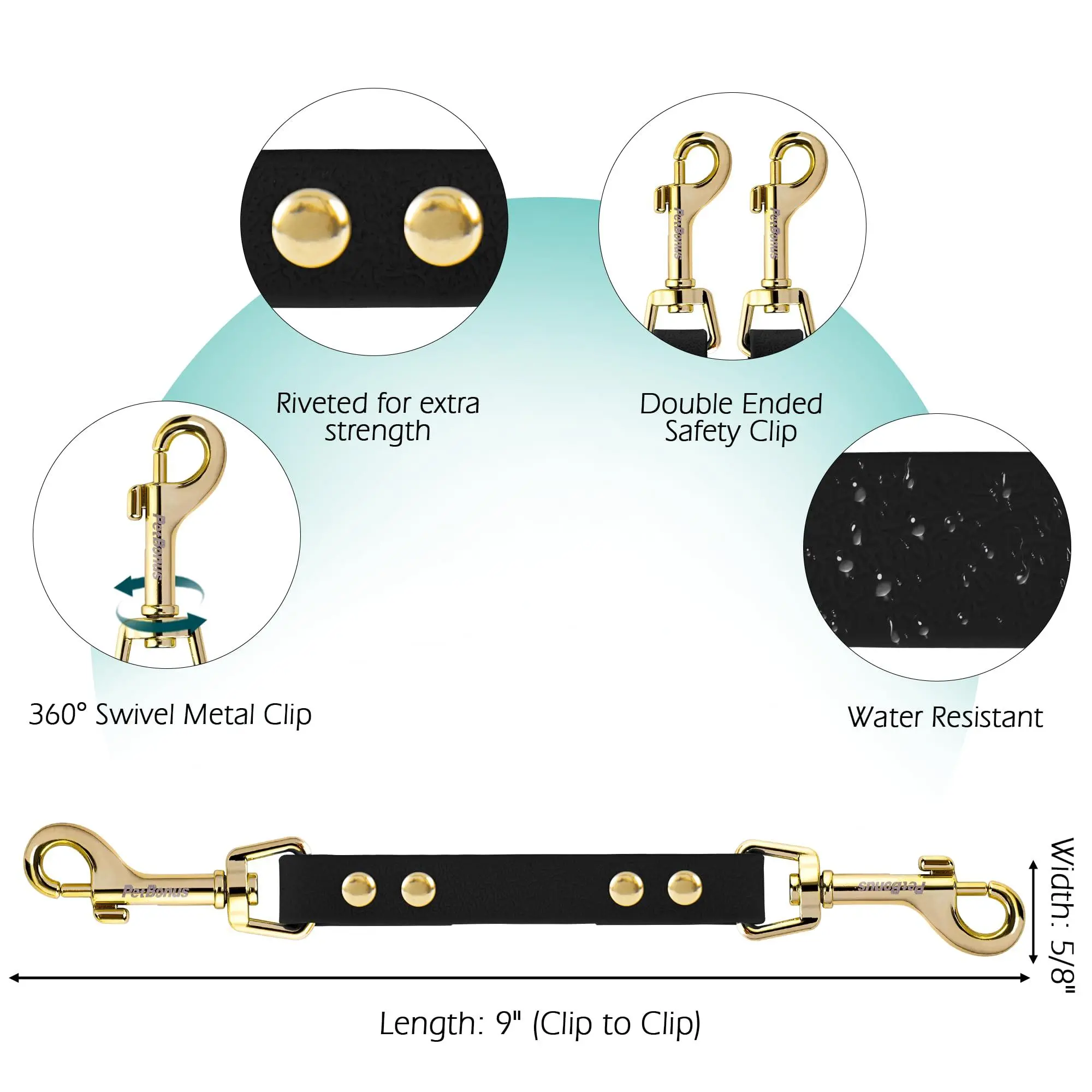 Durable and Strong: The rubbery coating and built-in polyester webbing make the dog collar to harness connector tougher and all hardware is made of zinc alloy metal for added durability, making it ideal for outdoor adventures