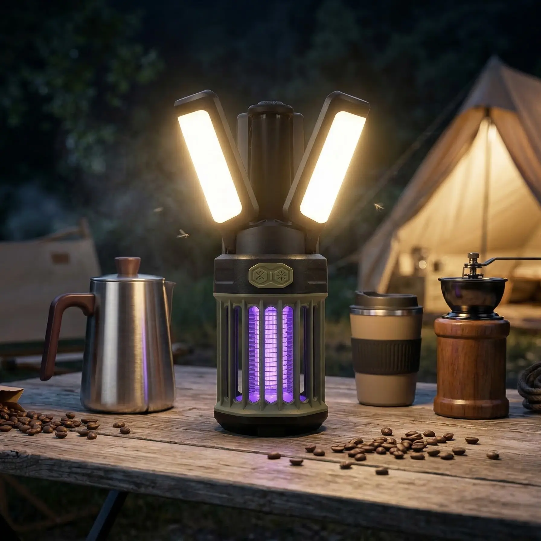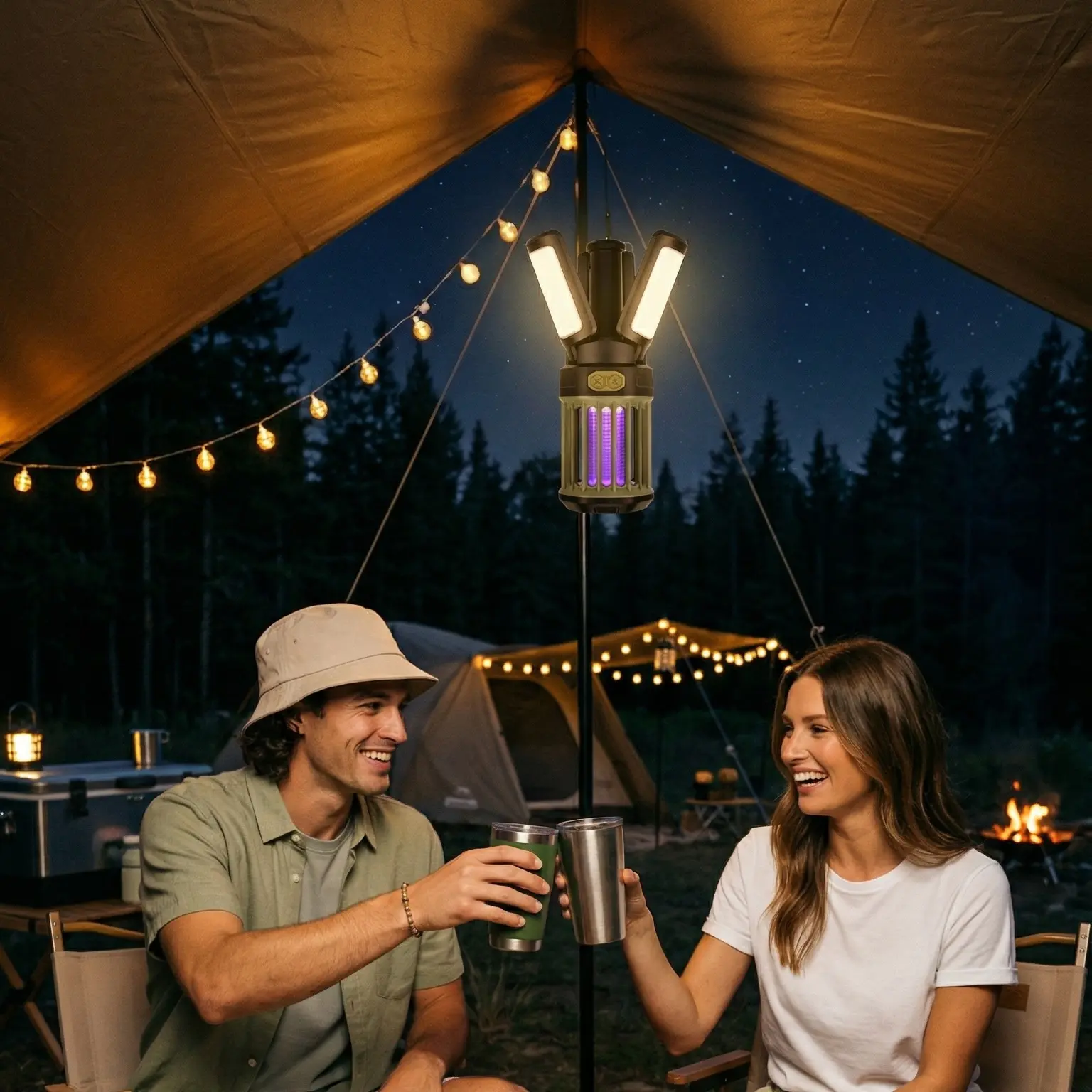 2-Pack Camping Lantern – 3 Color Temperatures (White/Warm/Red), Mosquito Repellent & Light Combo, 3000mAh Long Battery, Adjustable Multi-Angle Head, IPX6 Waterproof, Lightweight Hanging Hook for Outdoor & Home Swivel Headrest Chair