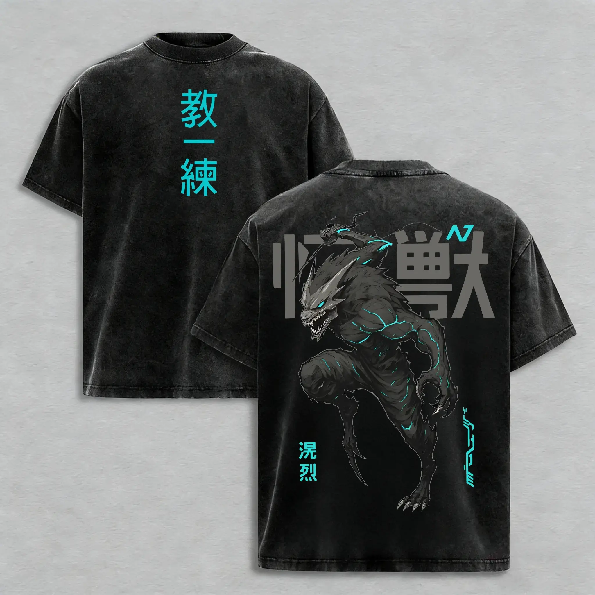 Kaiju No. 8 Anime Graphic Tee, Vintage Washed Oversized Dark Streetwear T-Shirt, Soft Cotton Unisex Menswear Top - Lemon Demon, Sade, Soulja Boy Outfit, Truck Fit, Gorlock Destroyer, Amiri-Style Gift Apparel