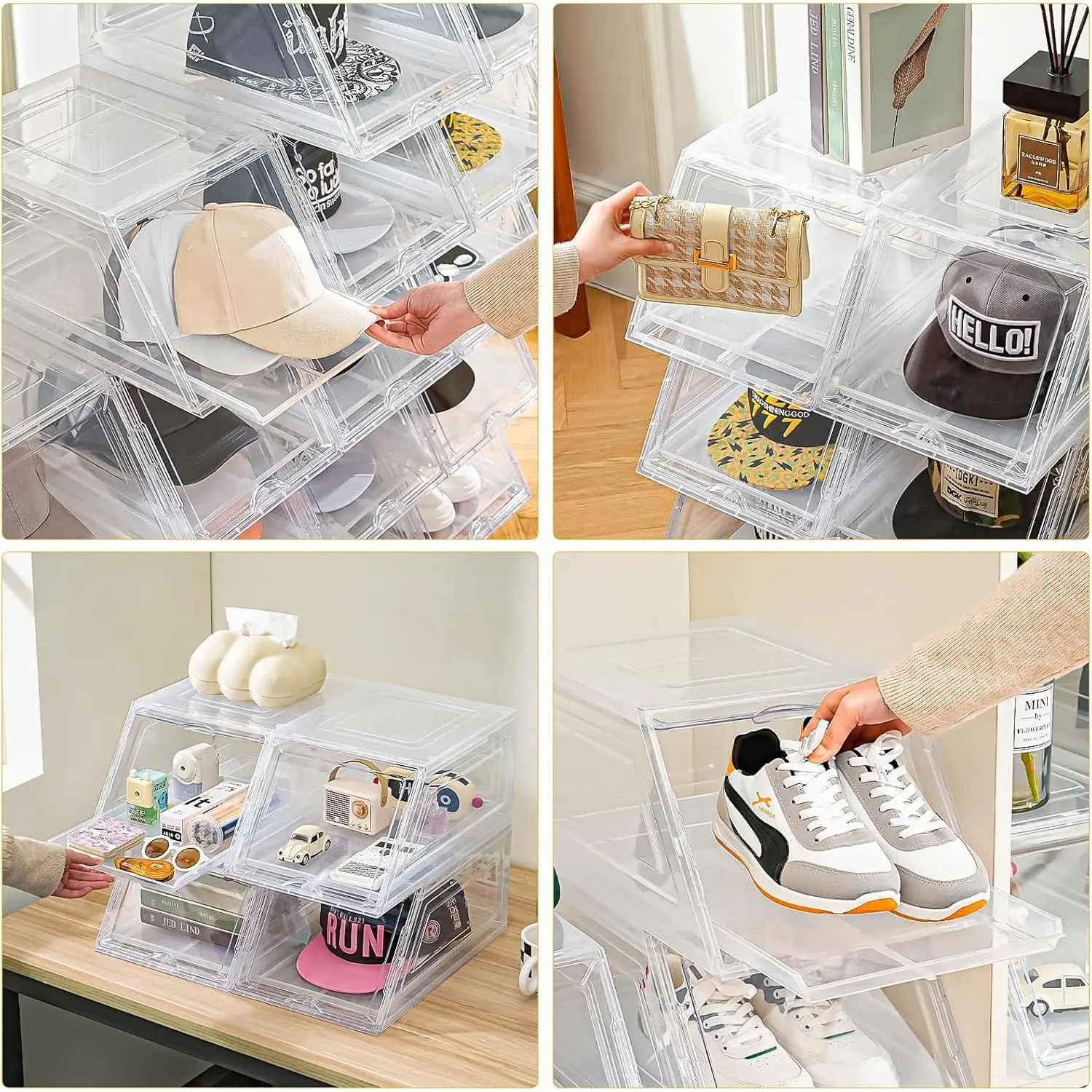 Vtopmart 2-4 Pack Hat Organizer for Baseball Caps, Clear Hats Holder Box with Drawer, Large Cap Storage with Sliding Tray, Stackable Rack Display Case with Magnetic Door, Each Holds 12 Hats