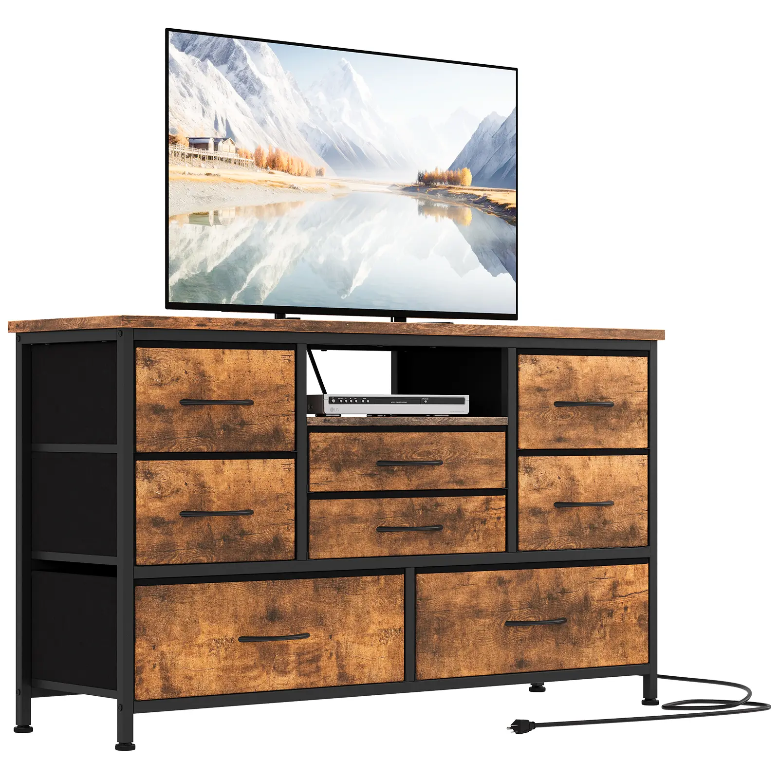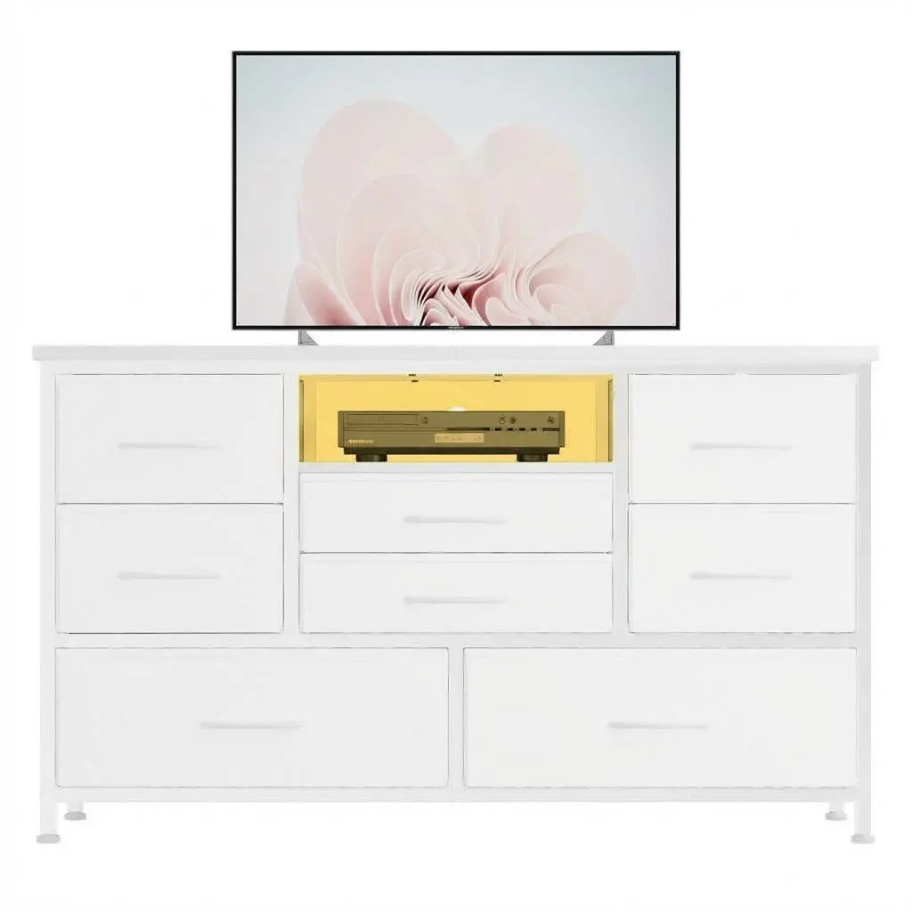 Package Includes: 1x Dresser TV Stand, 8x Drawers with powder Covers, 1x Remote, 1x 5ft Power Cord.Transform your daily organization and entertainment with this multifunctional dresser TV stand—a must-have for any modern household.