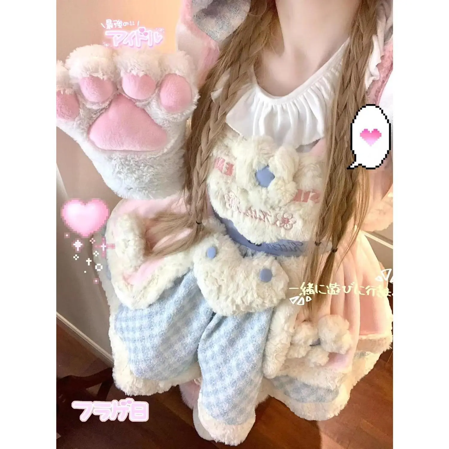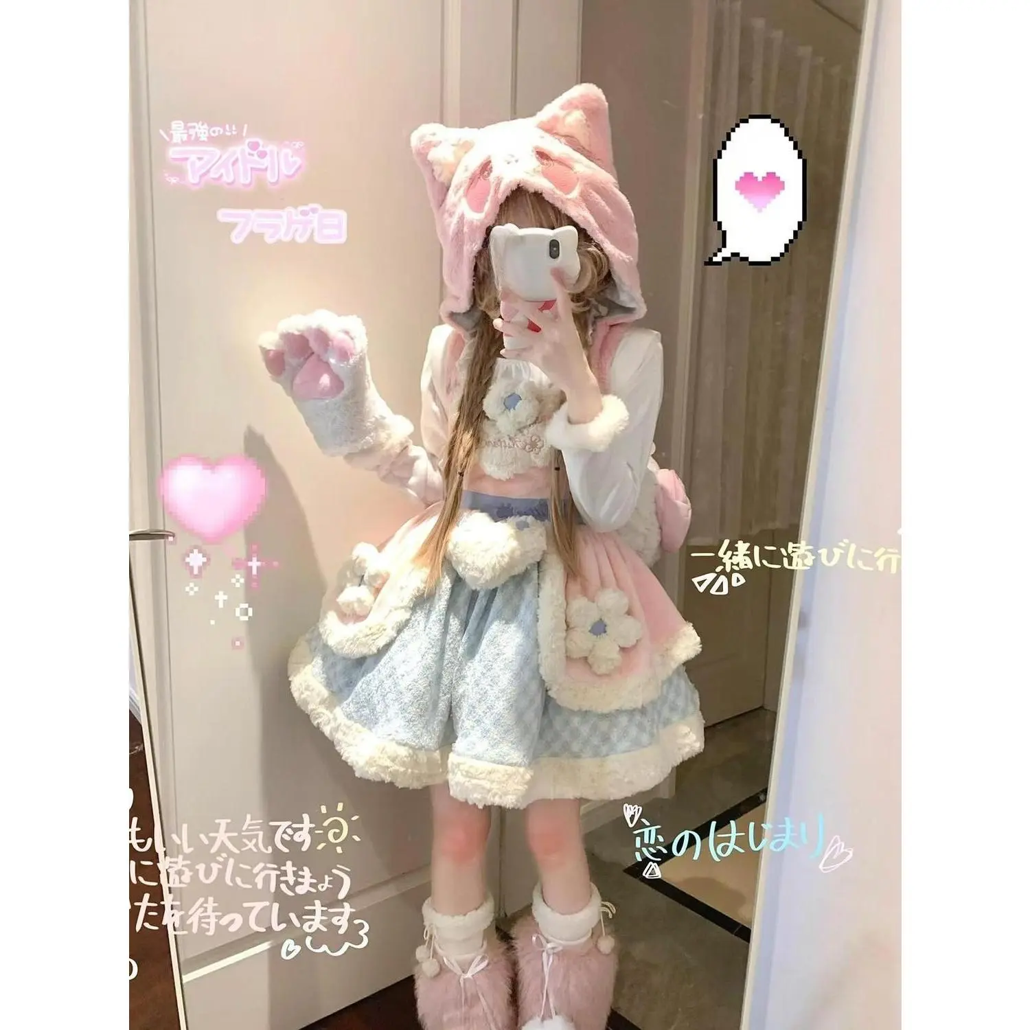 Christmas Cosplay Party Outfits Faux Fur Lolita Suits Women New Year Red Blouse + Knitted Dress Japanese Kawaii 2 Piece Sets