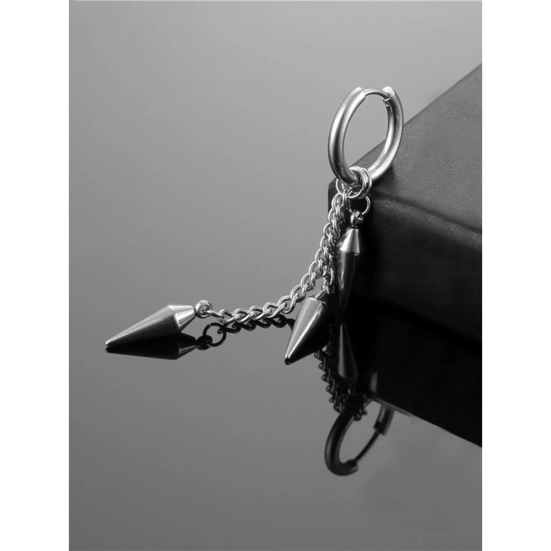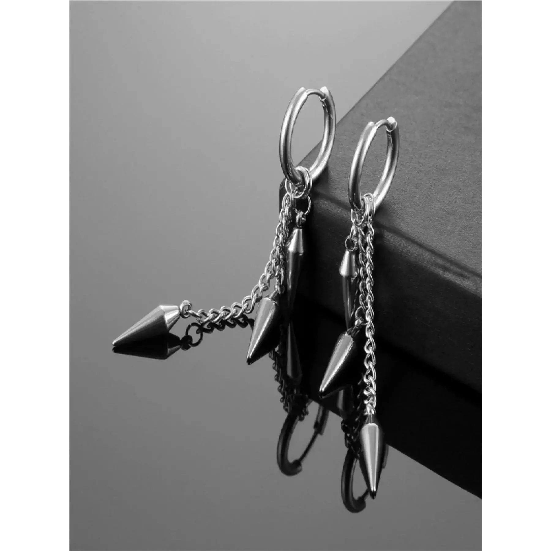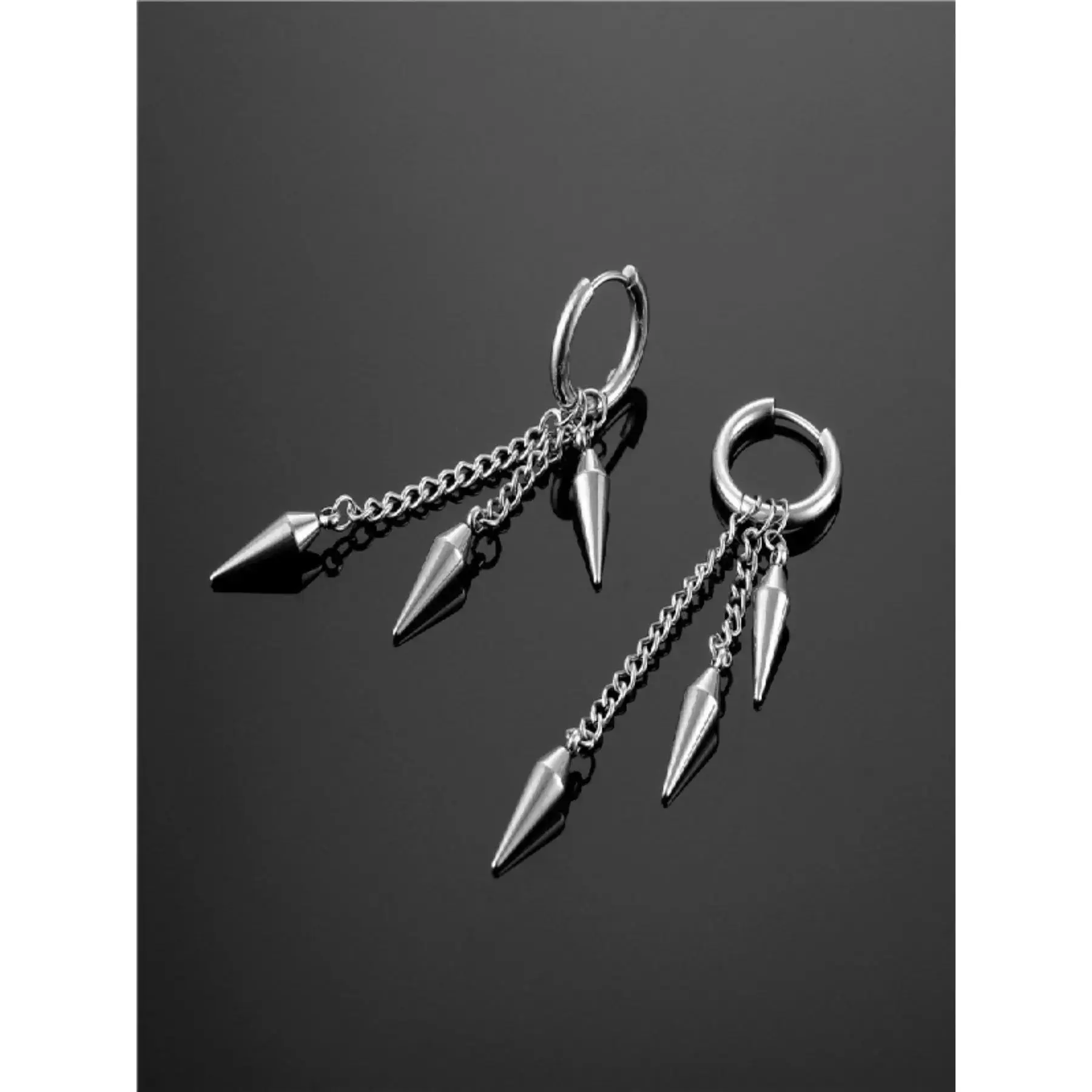 Gothic Punk Rock Style Conical Pendant Statement Earrings, Unisex Stainless Steel Hoop Accessories, Perfect for Daily Wear & Party Holidays