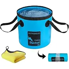 AUTODECO collapsible bucket offers a large 20L (5 gallon) capacity for versatile use. When fully opened, it measures 11 inch diameter x 11.8 inch height and weighs just 0.6LB.