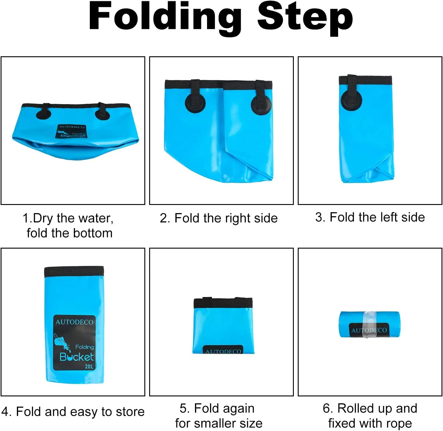 Compact folding design reduces it to 6.5" x 6.5" or rolled up to 3.5" x 6.5", saving space and making it easy to carry. Package includes 1 bucket and a towel.