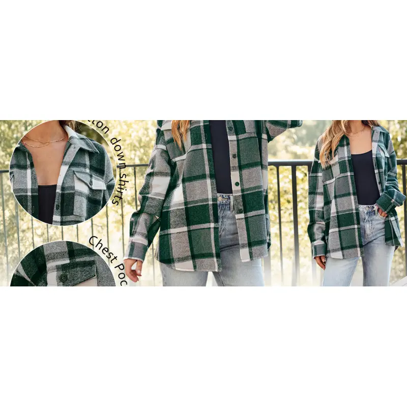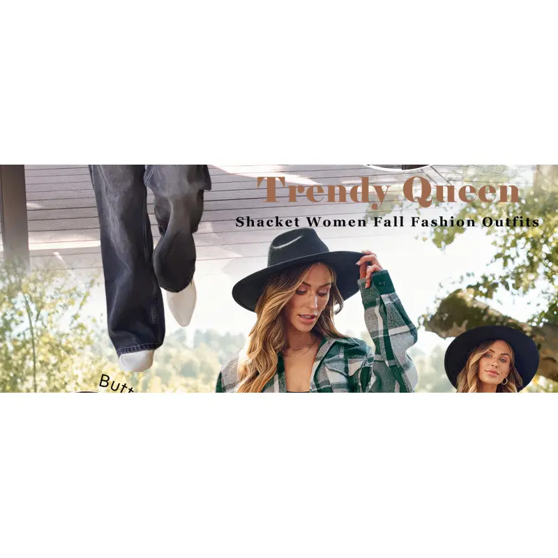 FEATURES: Trendy Queen cozy shacket is designed with soft, fuzzy fabric and a midweight feel to provide all-day warmth without bulk. It features two functional buttoned chest pockets and a relaxed fit, making it the transitional layer for fall, winter, and springDESIGN: With a classic plaid pattern, long button-cuff sleeves, and a button-front closure, this shacket blends timeless style with everyday comfort. The loose fit and collared design create a versatile, effortlessly cool look that’s both trendy and easy to wearOCCASION: Ideal for casual daily life, streetwear, office settings, school, shopping, holidays, vacations, and outdoor activities. It also makes a fashionable Christmas outfit and a thoughtful holiday gift for women who love cozy yet stylish layersMATCH: Layer it over tank tops, camis, or bodysuits, and pair with jeans, denim shorts, jeggings, or leggings. Complete your look with sneakers or boots for a put-together casual style that works seamlessly from season to seasonMATERIAL: Made from high-quality polyester, this shacket is skin-friendly, exceptionally soft, and designed for comfort. The fabric offers lightweight warmth and retains its shape, keeping you cozy and stylish through cool weather in fall, winter, and spring
