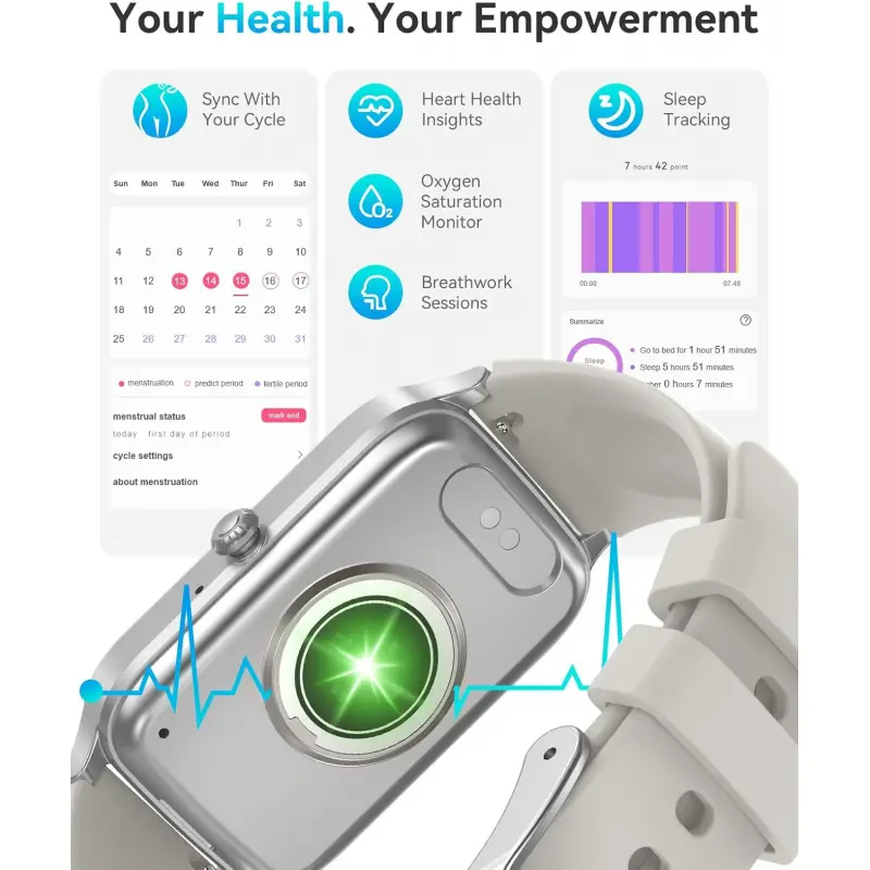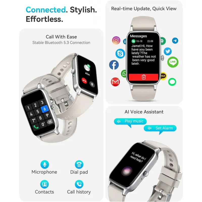 Stay Connected, Hands-Free: Never miss a beat.Take calls and get alerts directly on your watch thanks to seamless Bluetooth connectivity.The built-in speaker and microphone ensure crystal-clear sound, keeping you connected to your iOS and Android phone wherever you are