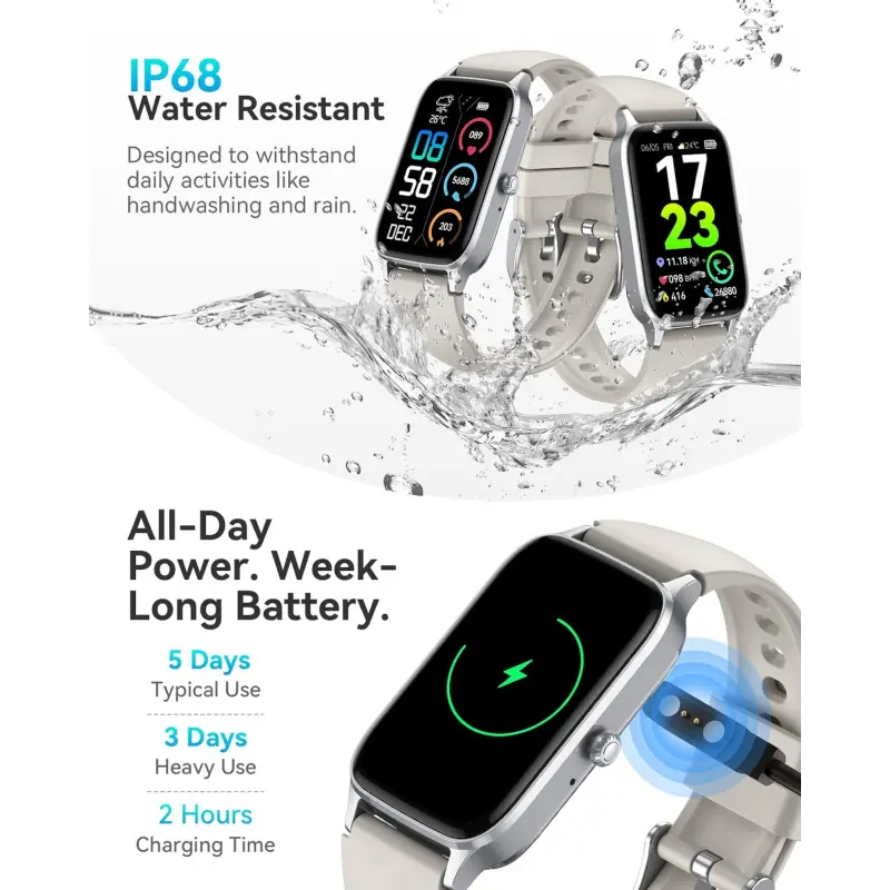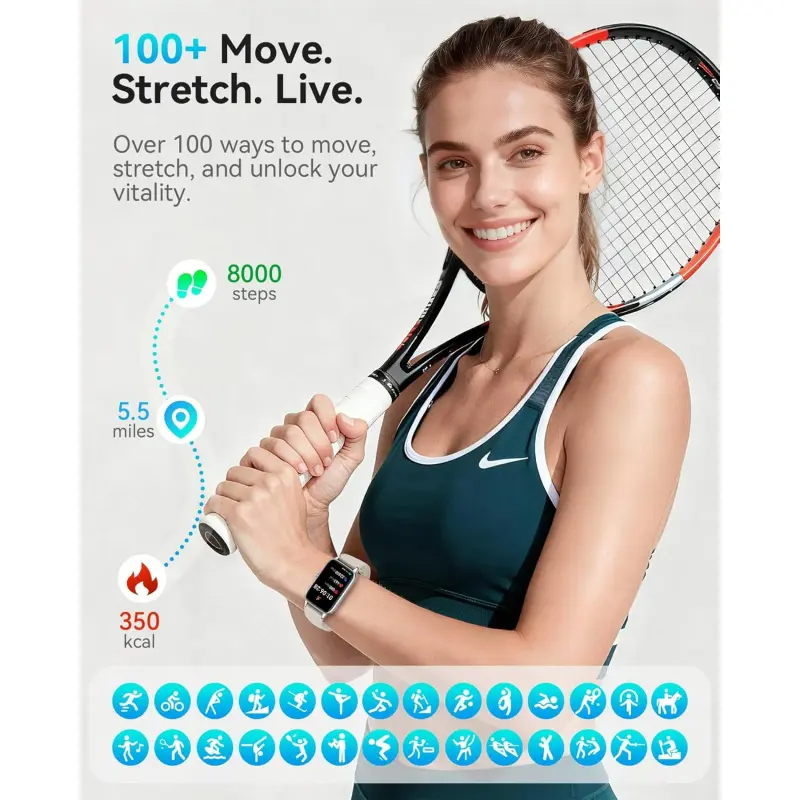 Find Your Favorite Workout: With 110+ sports modes, this fitness tracker watch is built for every passion.Track running, gym sessions, yoga, and more-all with key metrics like distance and calories.The IP68 rating means you can train anywhere, rain or shine.It’s your tool to explore, stay motivated, and own your fitness journey