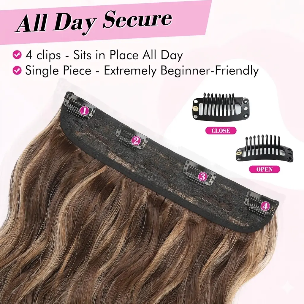 Elevate your hair game instantly with our 4 Clips One Piece Clip-in Hair Extensions in stunning Brown Mix Blonde Balayage! Designed for effortless style and all-day comfort, this single-piece hairpiece is the ultimate solution for anyone craving instant volume, length, or a sun-kissed highlighted look—no salon visits, no glue, no damage required.