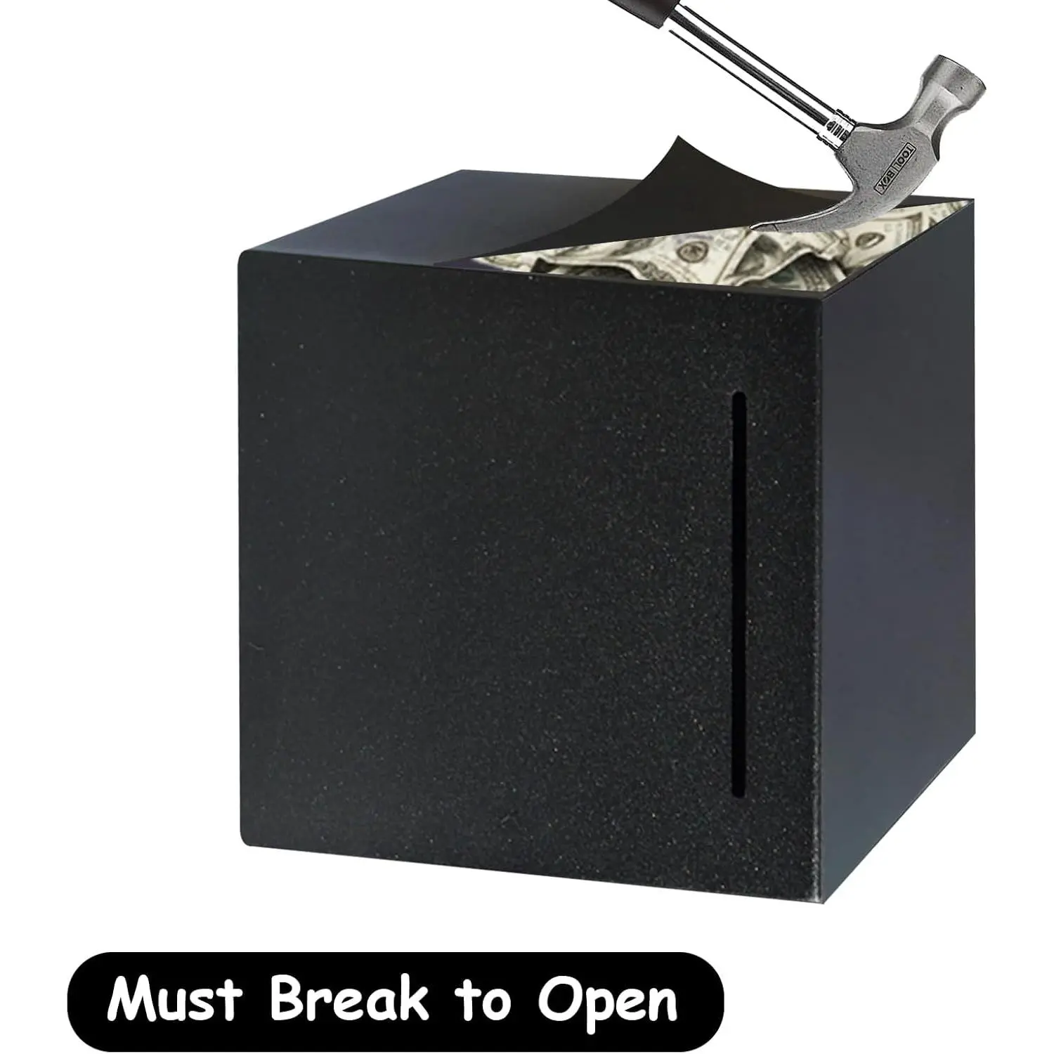 Stainless Steel Piggy Bank for Adults, Indestructible Savings Box for Cash, Must-Break-to-Open Metal Secure Money Banks for Kids, Unbreakable Coin Bank for Money Saving Plan (Black, 4.72inch)