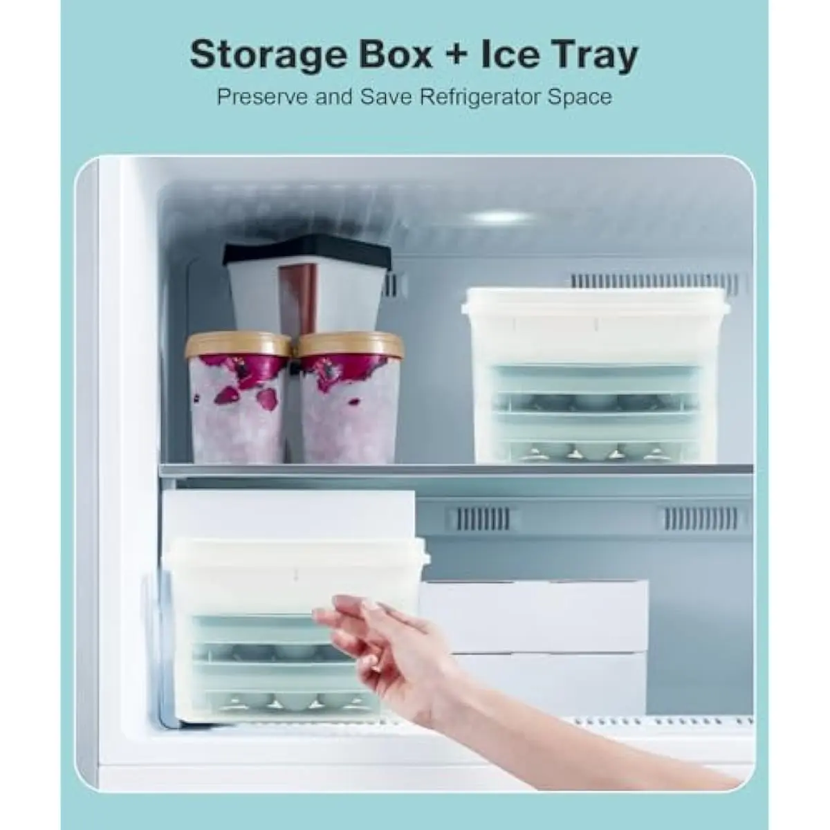 Stackable & Space-Saving Design :These ice cube trays for freezer with lid feature a stackable design and a storage bin, maximizing freezer space while keeping ice cubes organized and your freezer tidy. Perfect for both home and commercial use.