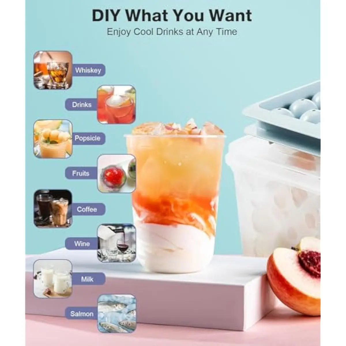 Adorable & Functional Ice Cube Trays :Make up to 62 1.2inch perfectly round mini ice balls with our round ice cube trays. Each set includes a storage iced bucket for convenient use, adding fun and creativity to your cold drinks like cocktails, sodas, and iced coffee.