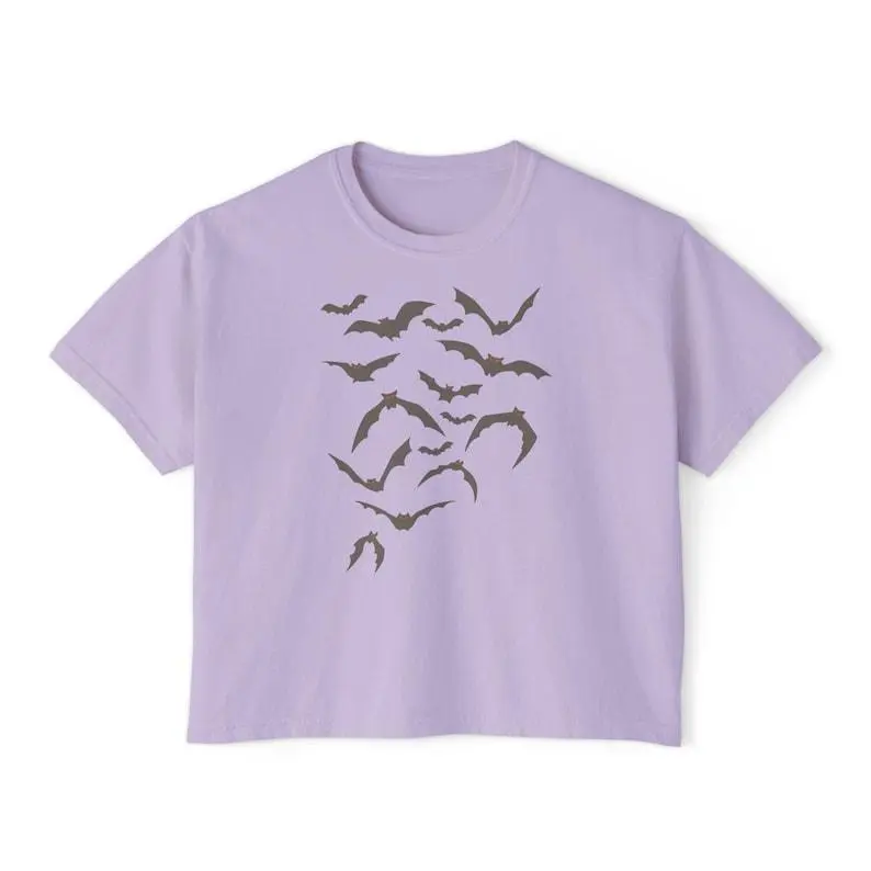 Bats Boxy Top – Halloween Aesthetic, Flying Bats Graphic, Fall Style