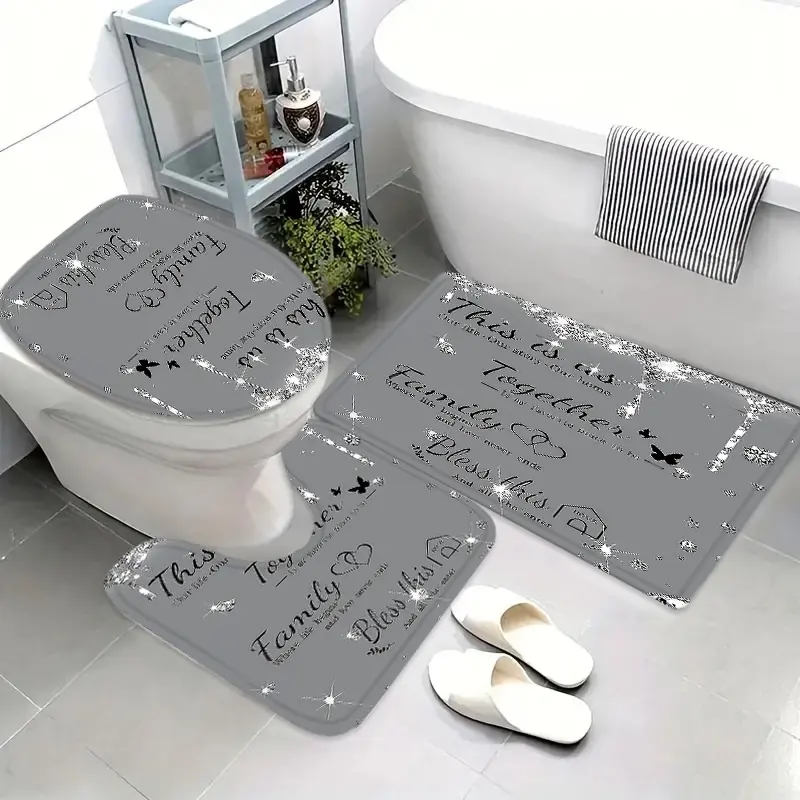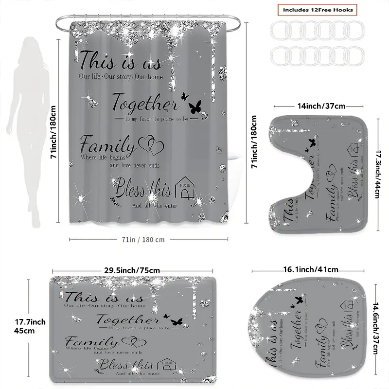 【Complete Set】: Includes shower curtain, toilet lid cover, bath mat, and more, offering a comprehensive bathroom solution.