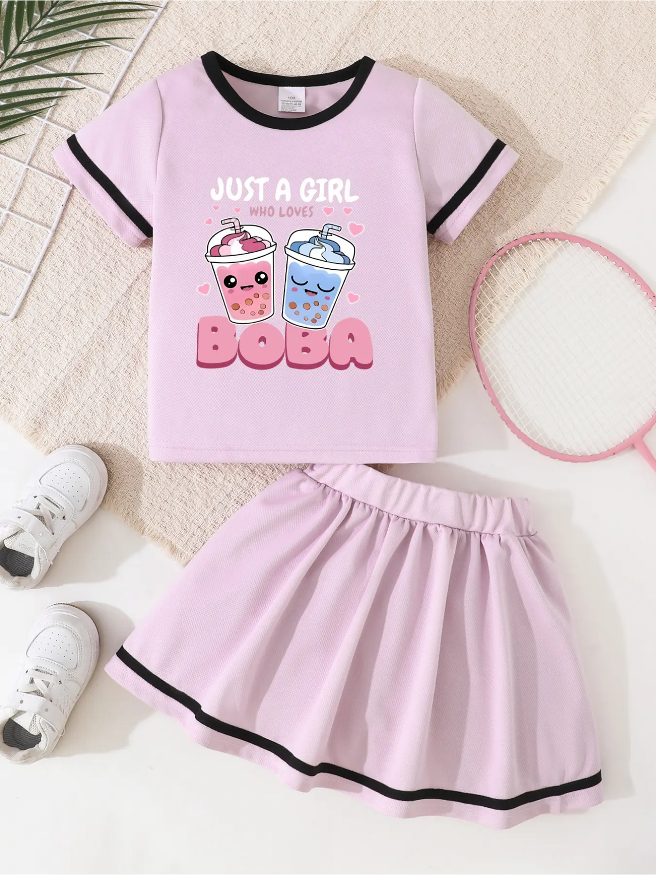 Two-piece set for girls in summer tennis and badminton T-shirt and skirt combination, round neck with contrasting trim short sleeves  high-waisted short skirt, casual two-piece single set, T-shirt with cartoon iron-on pattern paired with summer half skirtTwo-piece set for girls in summer tennis and badminton T-shirt and skirt combination, round neck with contrasting trim short sleeves  high-waisted short skirt, casual two-piece single set, T-shirt with cartoon iron-on pattern paired with summer half skirtTwo-piece set for girls in summer tennis and badminton T-shirt and skirt combination, round neck with contrasting trim short sleeves  high-waisted short skirt, casual two-piece single set, T-shirt with cartoon iron-on pattern paired with summer half skirtTwo-piece set for girls in summer tennis and badminton T-shirt and skirt combination, round neck with contrasting trim short sleeves  high-waisted short skirt, casual two-piece single set, T-shirt with cartoon iron-on pattern paired with summer half skirtTwo-piece set for girls in summer tennis and badminton T-shirt and skirt combination, round neck with contrasting trim short sleeves  high-waisted short skirt, casual two-piece single set, T-shirt with cartoon iron-on pattern paired with summer half skirt