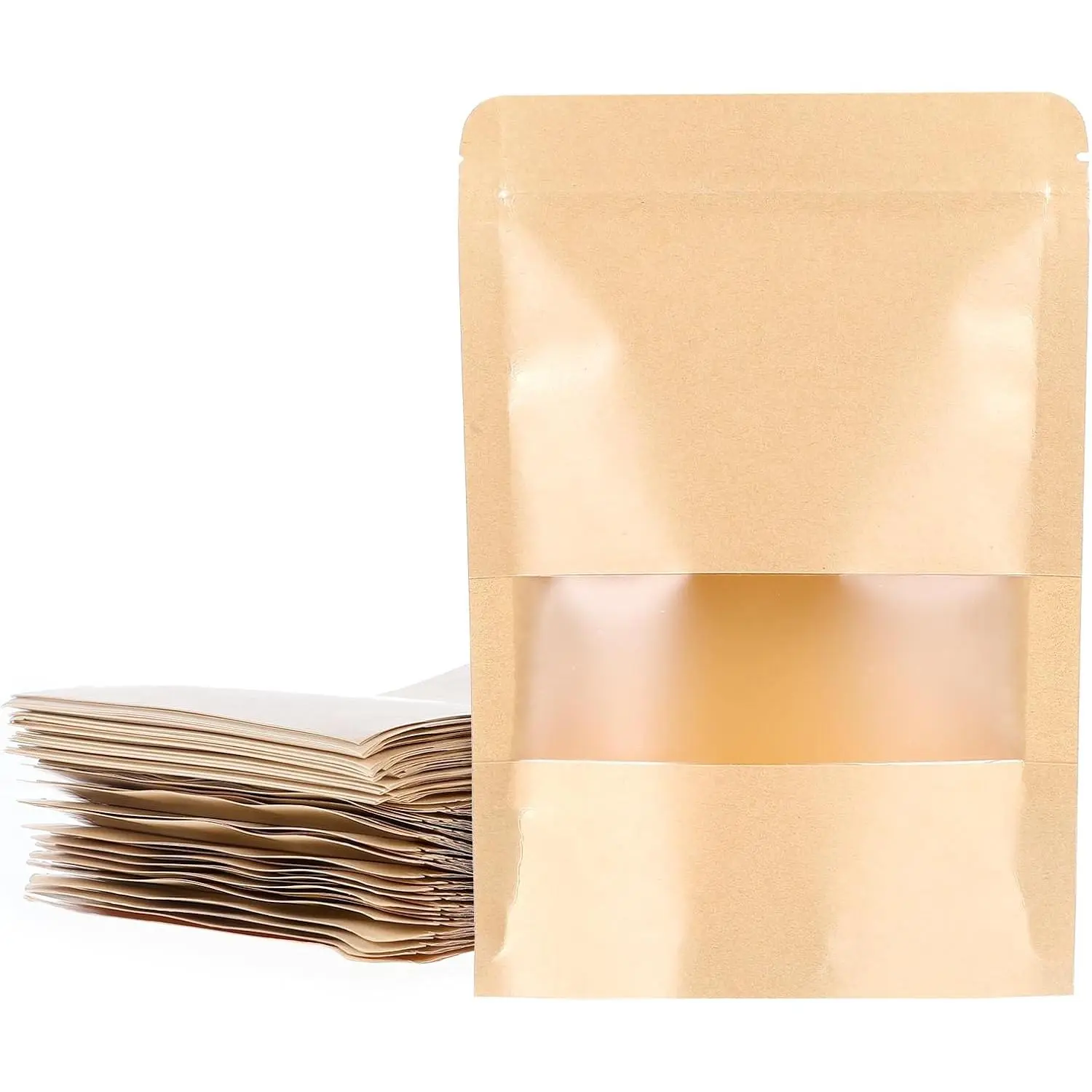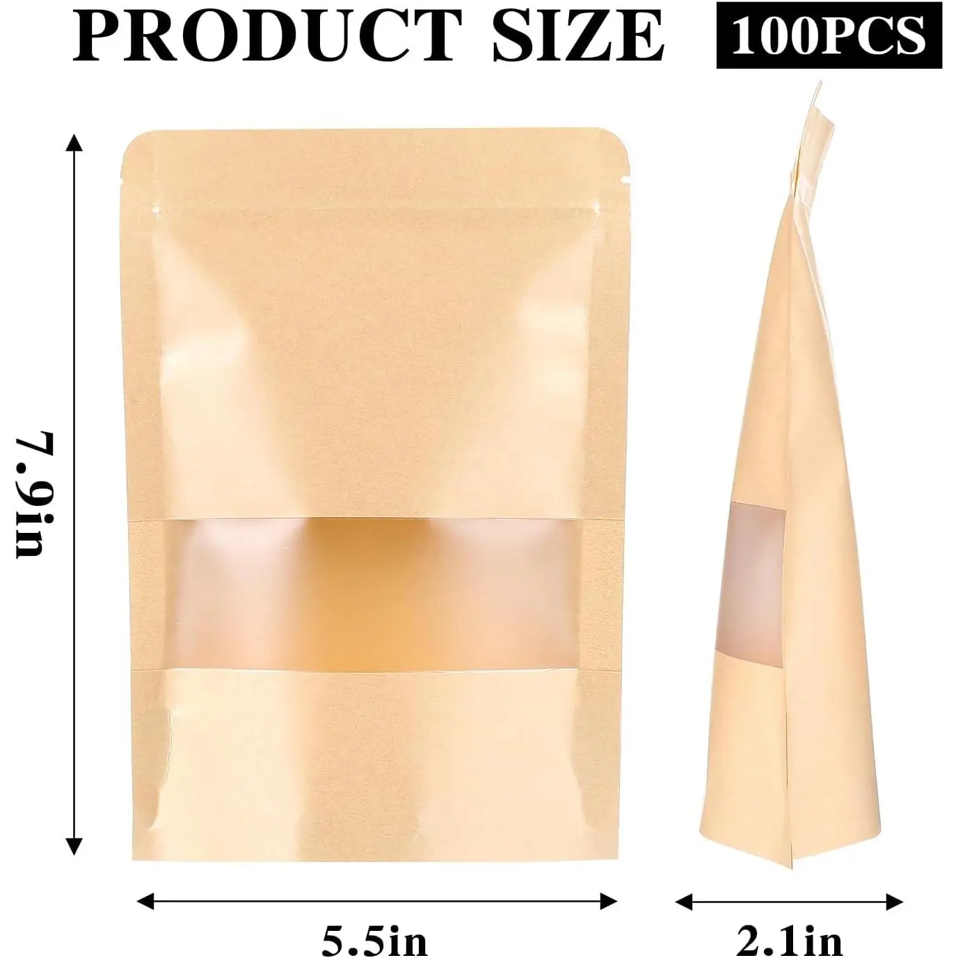 100 PCS Resealable bags, 5.5" x 7.9" Stand Up Paper Bags with Matte Window, Food Storage Bag for Packaging Products, Reusable, Sealable