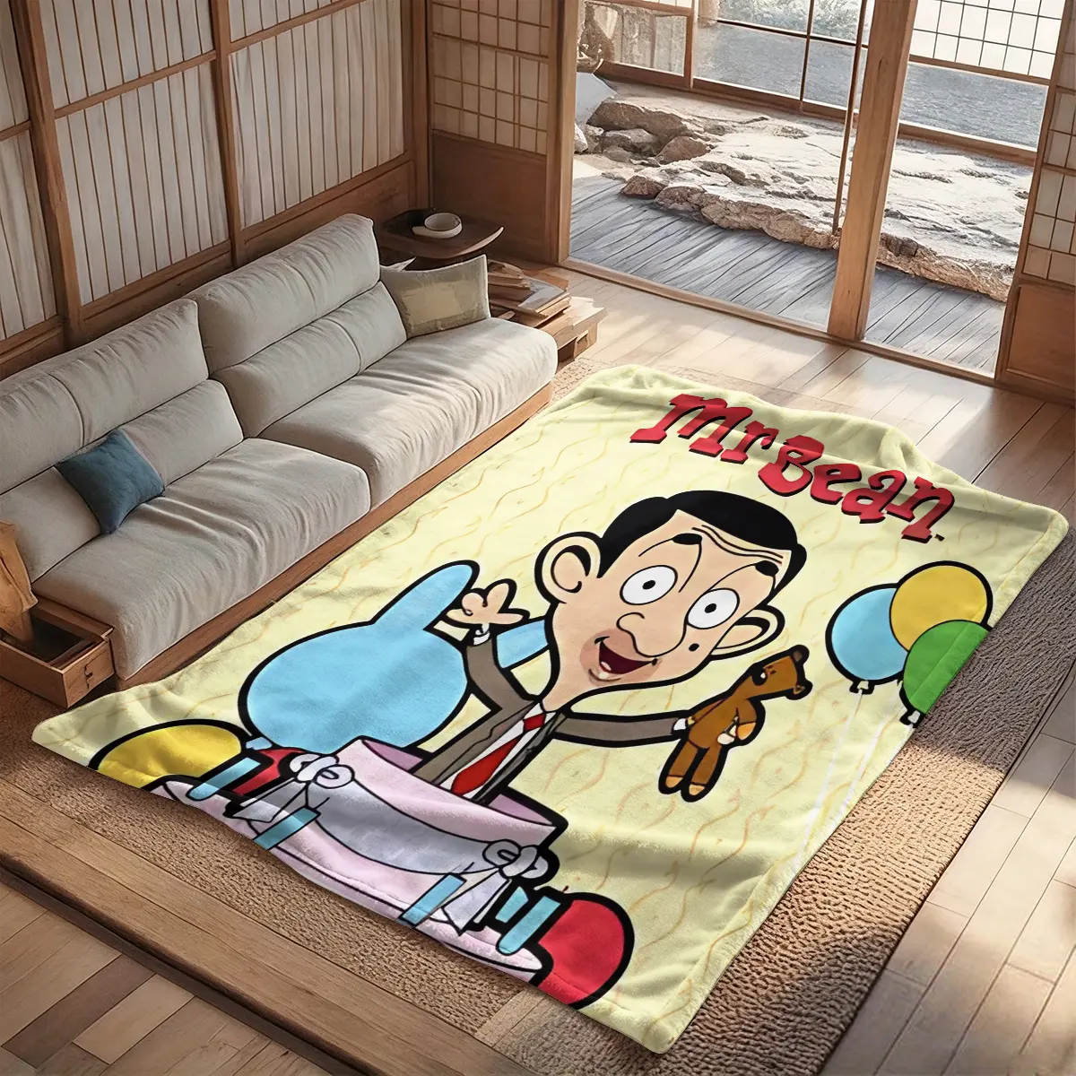 Mr. Bean design flannel blanket, exclusive gift for home, office, camping travel, personalized pattern design, modern style, soft texture