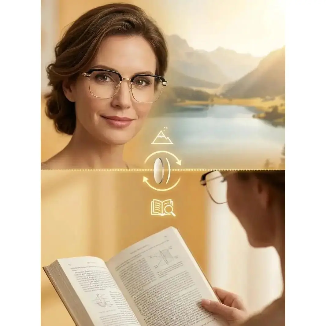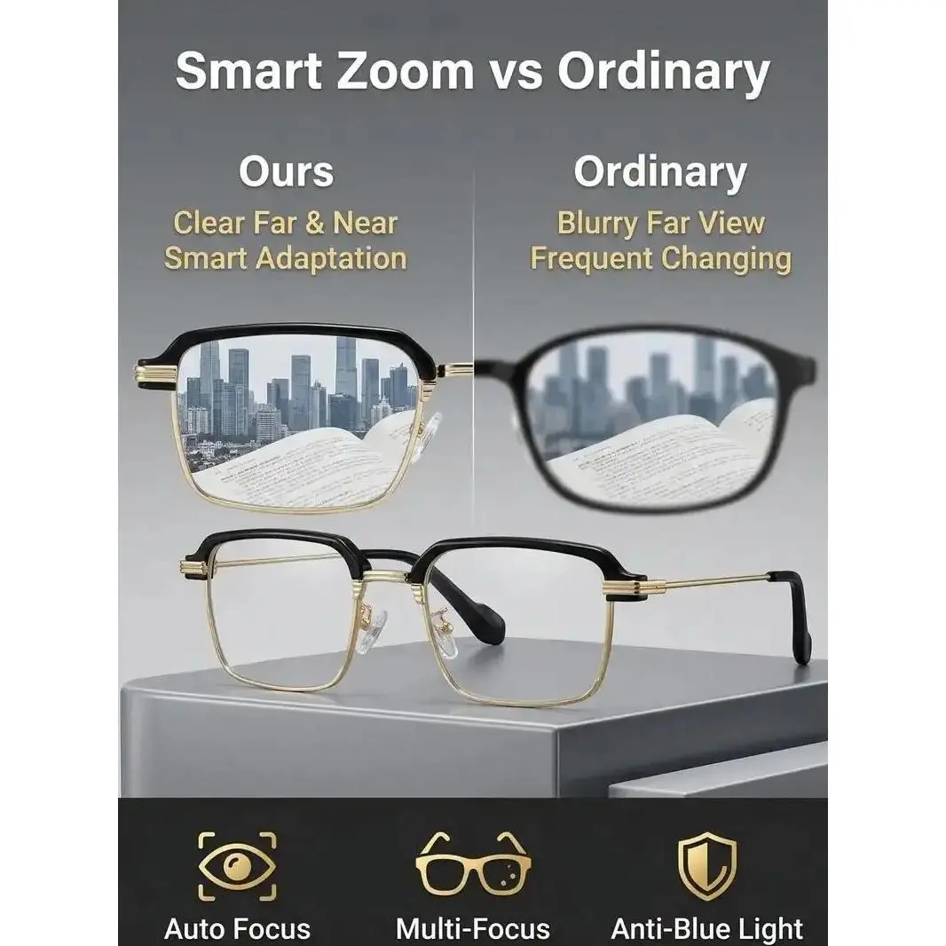 2026 New Smart Auto-Zoom Reading Glasses feature automatic vision adjustment from +1.00 to +4.00 diopters for clear sight at all distances.The HD lenses come with effective blue light filtering to relieve eye strain and protect your eyes from screen harm.Ergonomic lightweight frame ensures all-day comfortable wear.Perfect for reading, office work, travel and daily use for both men and women.