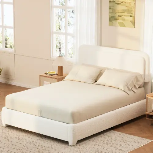 Comes with all hardware, tools, and clear instructions for easy assembly. Its modern curved silhouette and stylish bouclé finish make it a perfect centerpiece for master bedrooms, guest rooms, apartments, and small spaces.