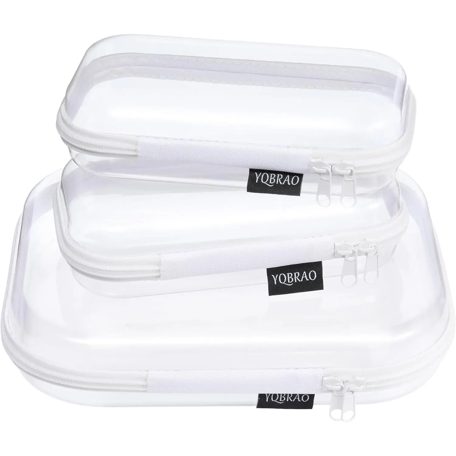 3 Pack Clear Hard Shell Zipper Case - Clear Waterproof Cosmetic Bag with Zipper, Kid's Toy Storage Organizer Bins, Charging Cables, creative journaling, painting brushes, Threads,Sketch Supplies