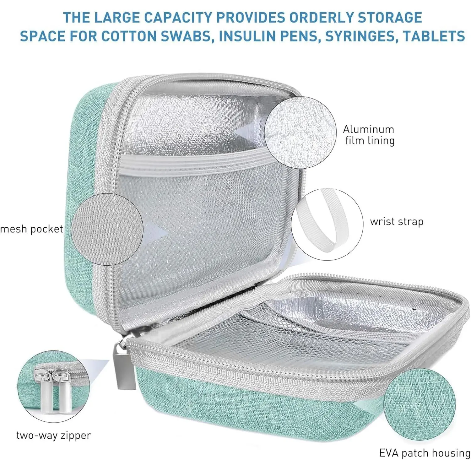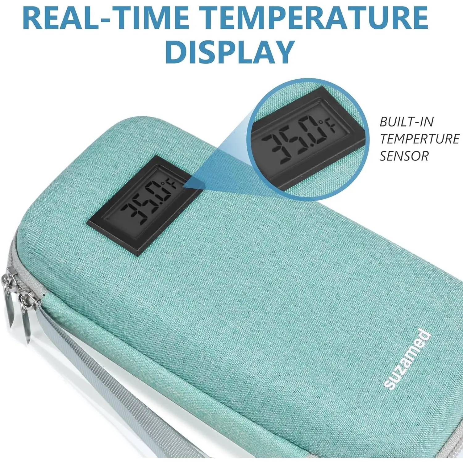 Insulin Cooler Travel Case,EVA Insulation Travel Medicine Kit with Temperature Display for Diabetes Care,Insulin Pen and Other Diabetic Supplies (Green-Temp)