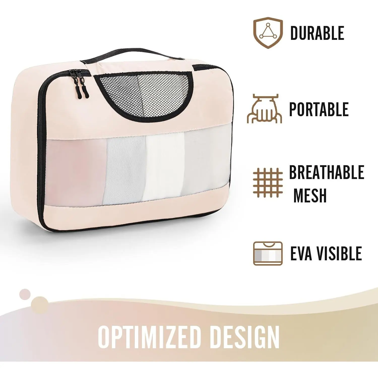 8 Set Packing Cubes for Luggage,Suitcase Organizer in 4 Sizes with Hanging Toiletry Bag and Large Laundry Bag, Carry-On Luggage with Accessories Bag, Cream