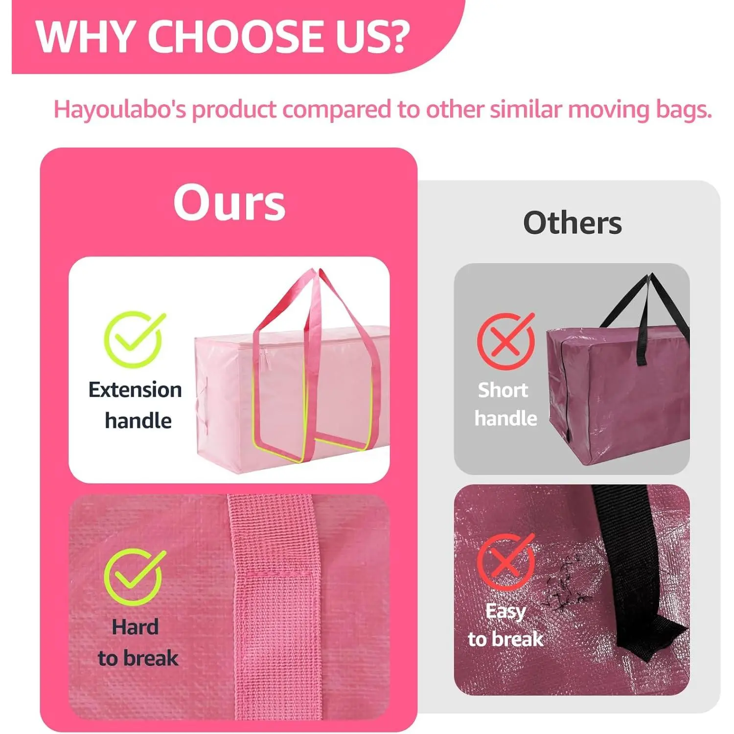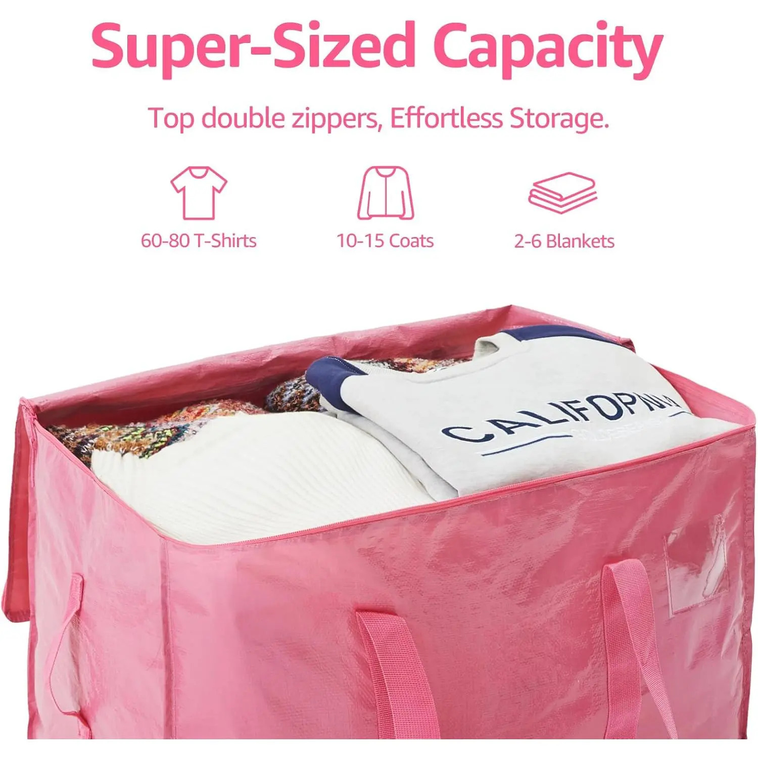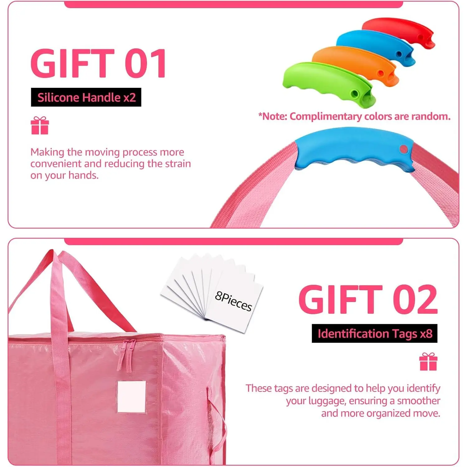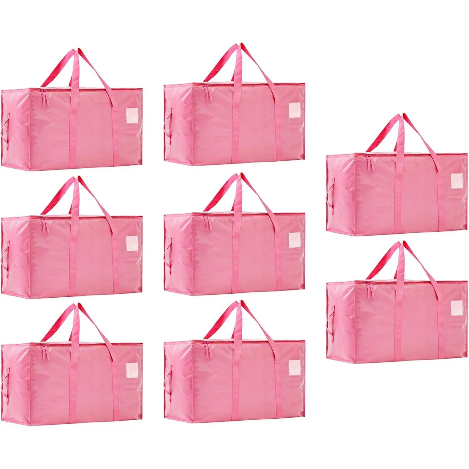 Moving Bags Heavy Duty Extra Large, Moving Boxes, Moving Supplies Essentials,Storage Bins with Lids, Plastic Packing Totes, Storage Bags for Clothes with Handles & Zippers(Pink, 8 Pack)
