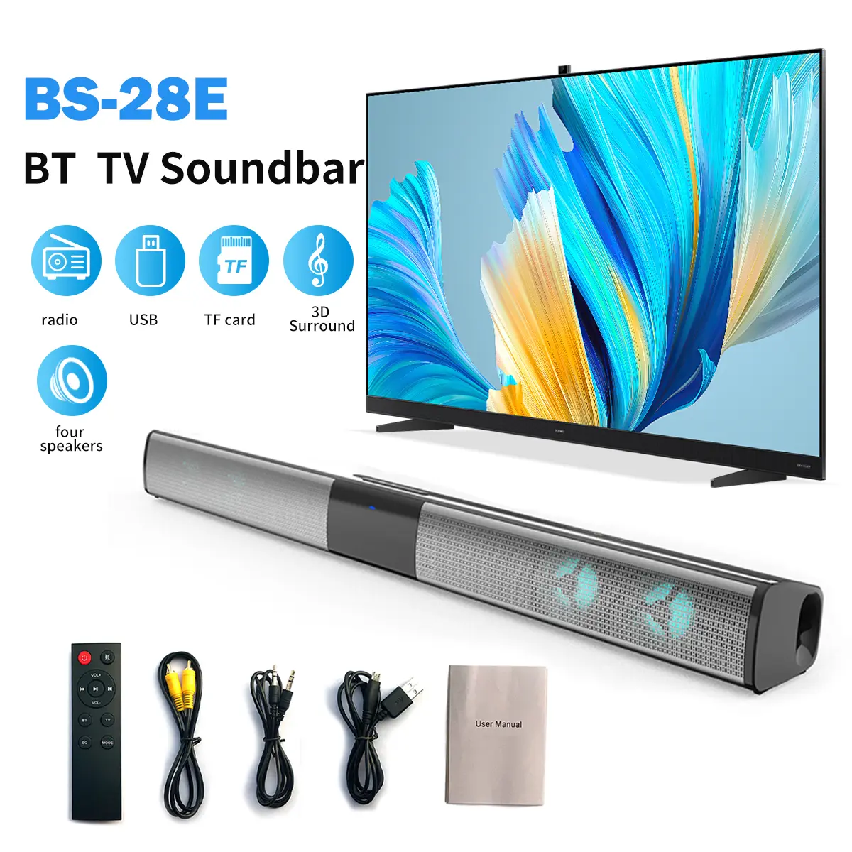 Sound Box, Bluetooth 5.0 Soundbar Speaker, Home Theater 3D Soundbars Bass Subwoofer With ARC,OPT,Coaxial Line Remote Control