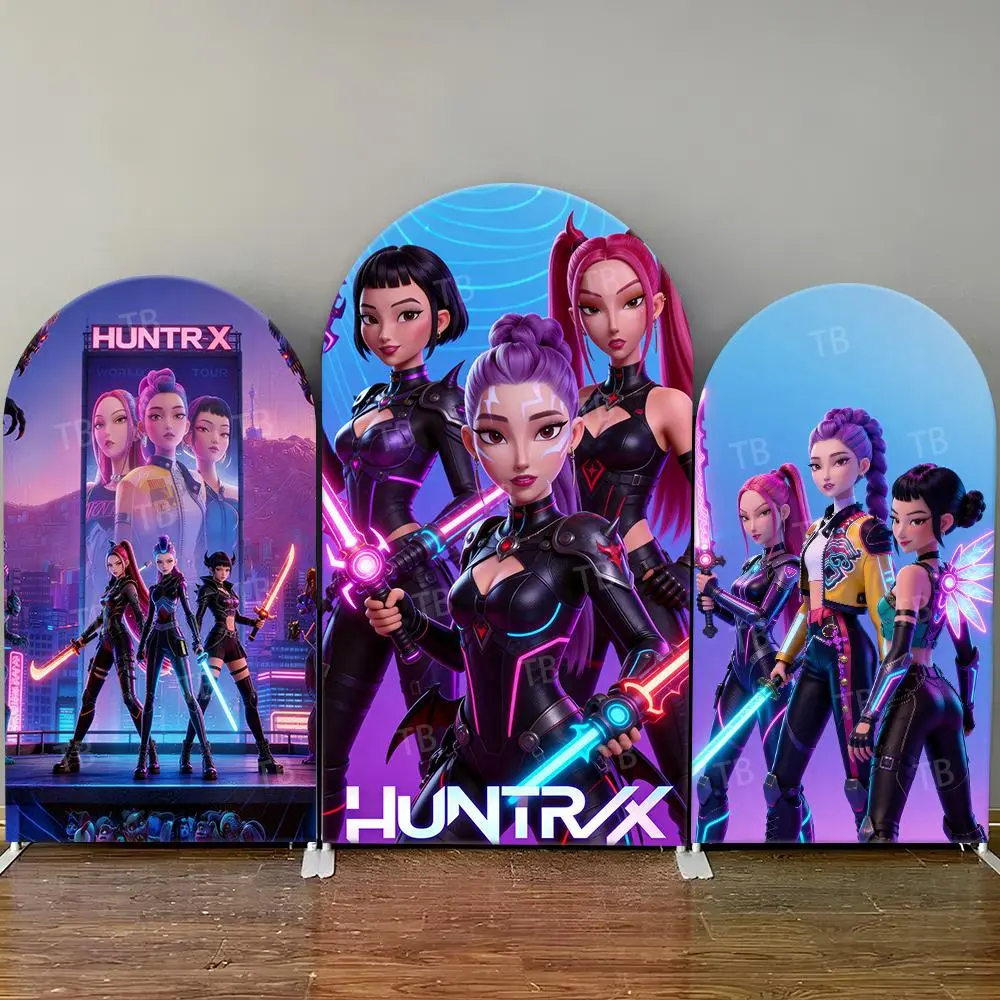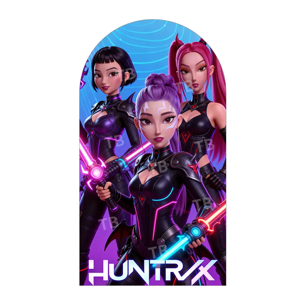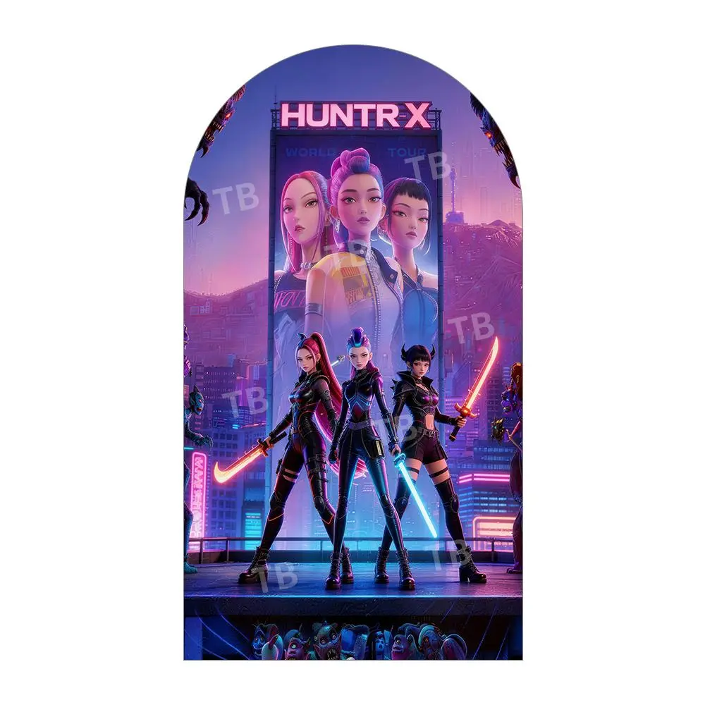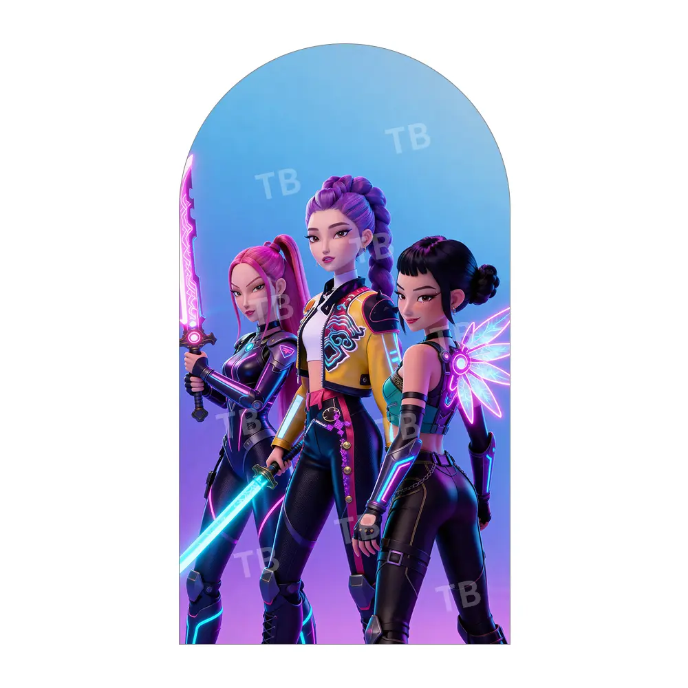 Sci-Fi Neon Light Saber Arch Backdrop Cover Set for Futuristic Birthday Party